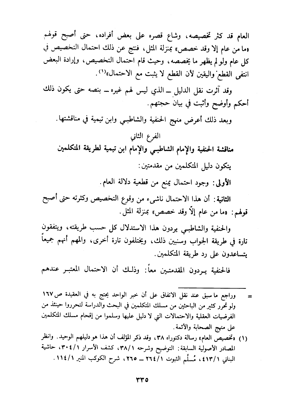 مناقشة الحنفية والإِمام الشاطبي والإِمام ابن تيمية لطريقة المتكلمين