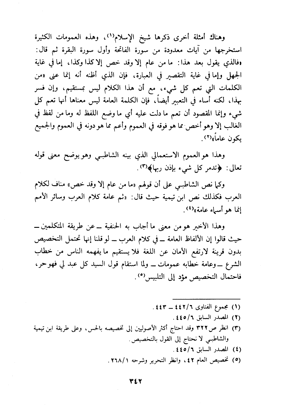 (٥) تخصيص العام ٤٢، وانظر التحرير وشرحه ١/ ٢٦٨.