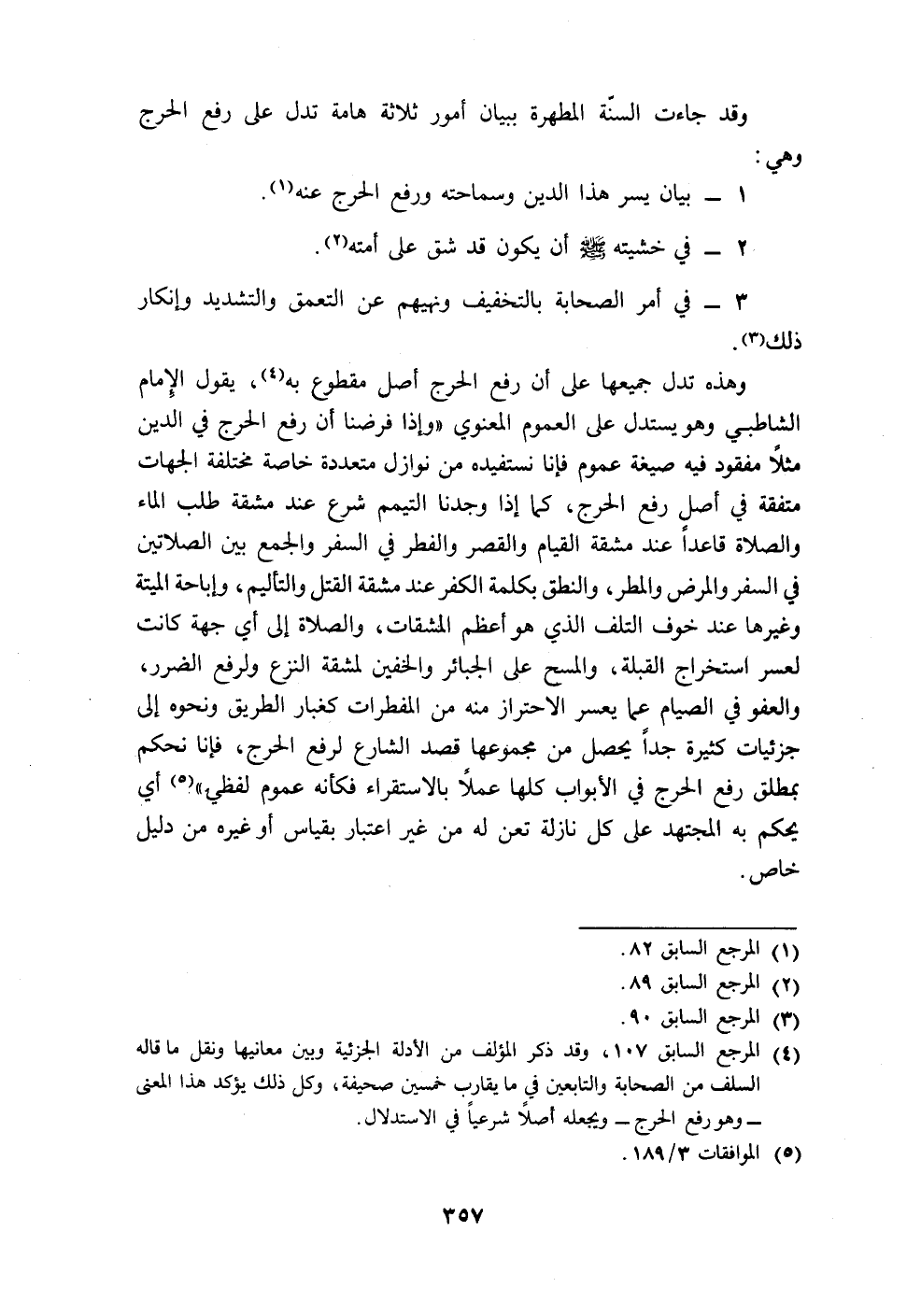 (٤) المرجع السابق ١٠٧، وقد ذكر المؤلف من الأدلة الجزئية وبين معانيها ونقل ما قاله السلف من الصحابة والتابعين في ما يقارب خمسين صحيفة، وكل ذلك يؤكد هذا المعنى -وهو رفع الحرج- ويجعله أصلاً شرعياً في الاستدلال.