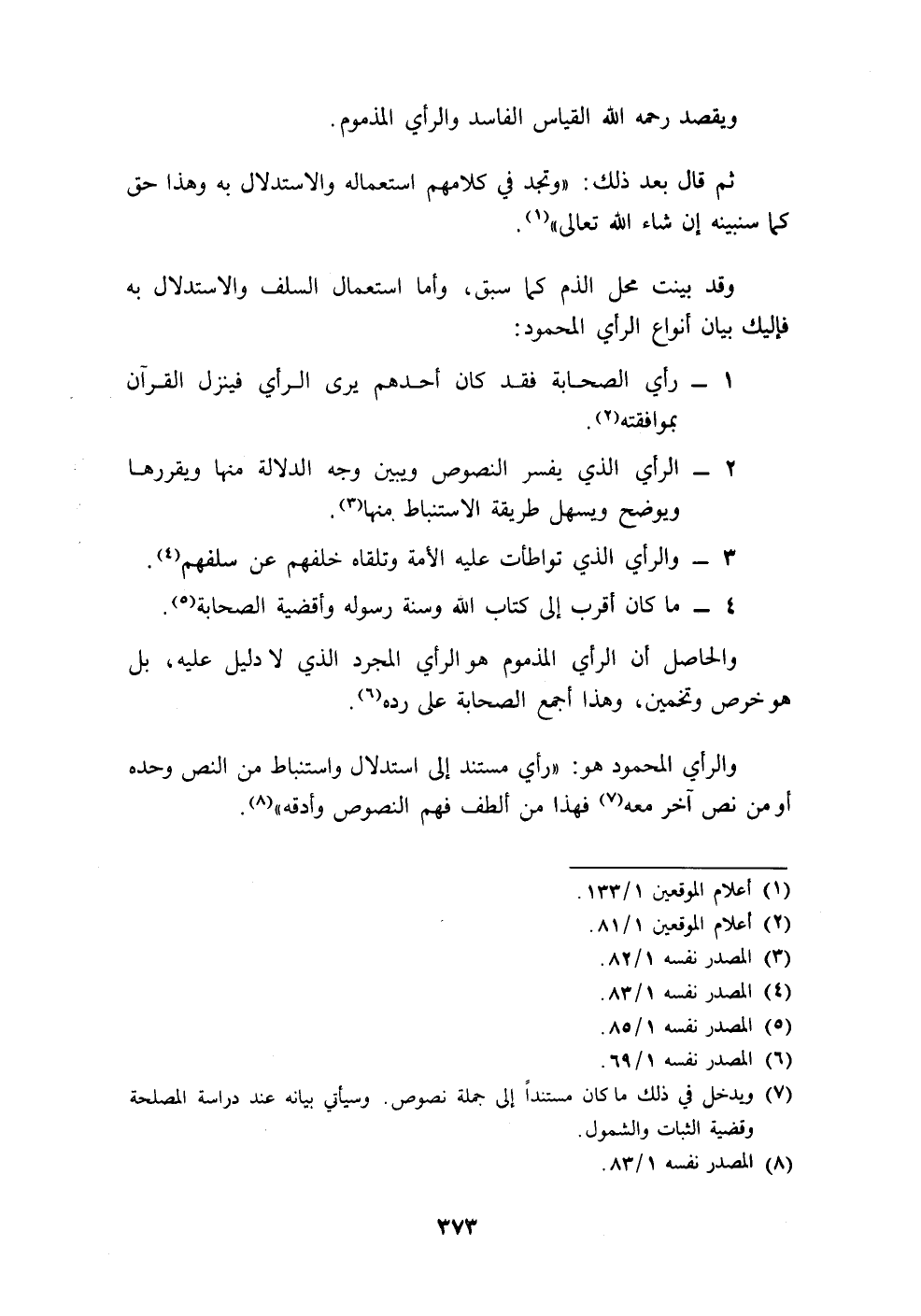 والرأي المحمود هو: "رأي مستند إلى استدلال واستنباط من النص وحده أو من نص آخر معه (٧) فهذا من ألطف فهم النصوص وأدقه" (٨).