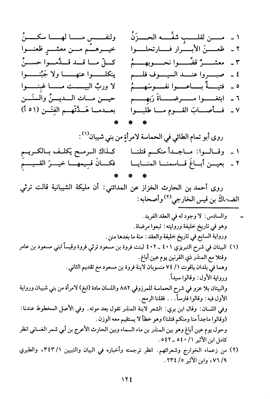 روى أبو تمام الطائي في الحماسة لامرأة من بني شيبان: