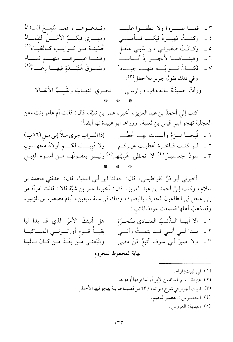 ورأتْ حسينَةُ بالعداب فوارسي ... تحوي النهابَ وتقْسِمُ الأنفالا