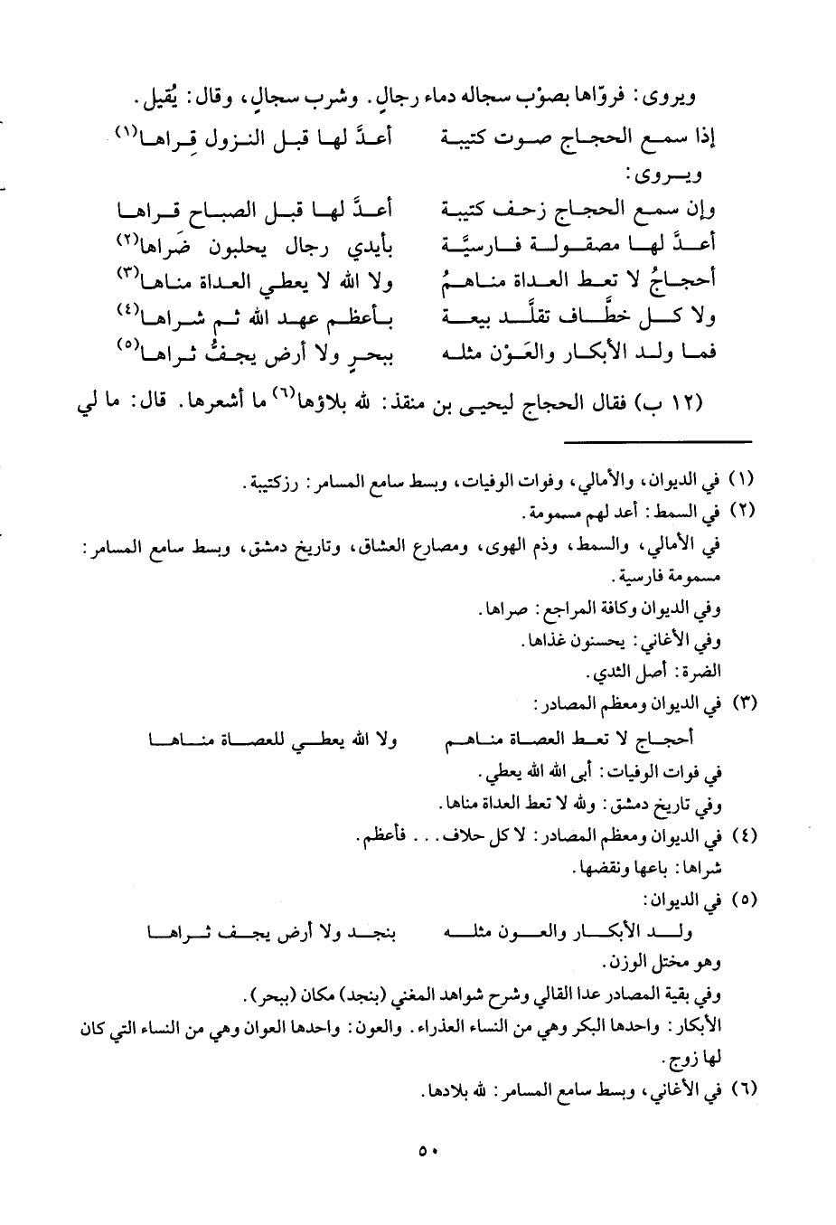 فقال الحجاج ليحيى بن منقذ: لله بلاؤها ما أشعرها. قال: ما لي