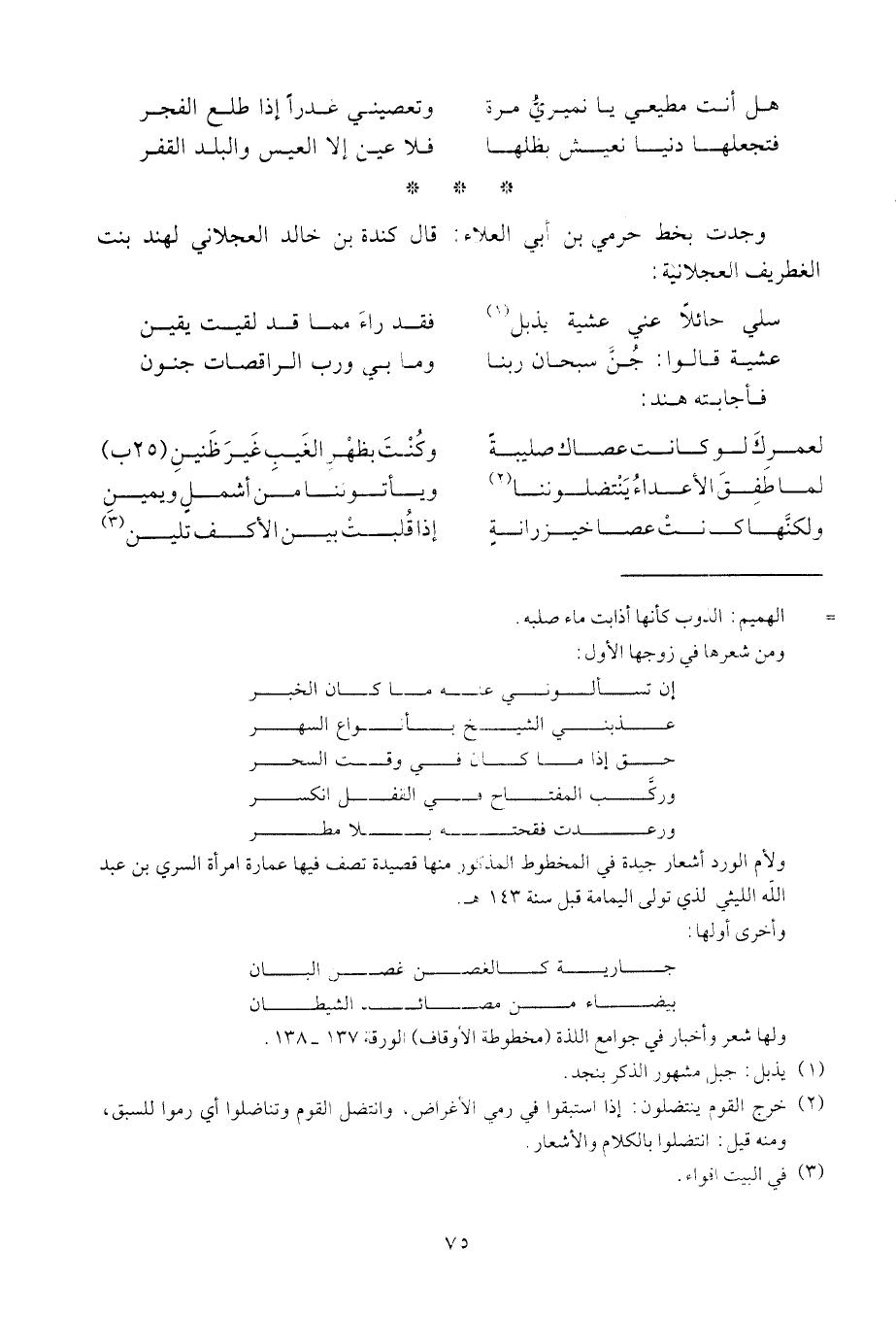 وجدت حرمي بن أبي علاء: قال كندة بن خالد العحلاني لهند بنت الغطريف العجلانية: