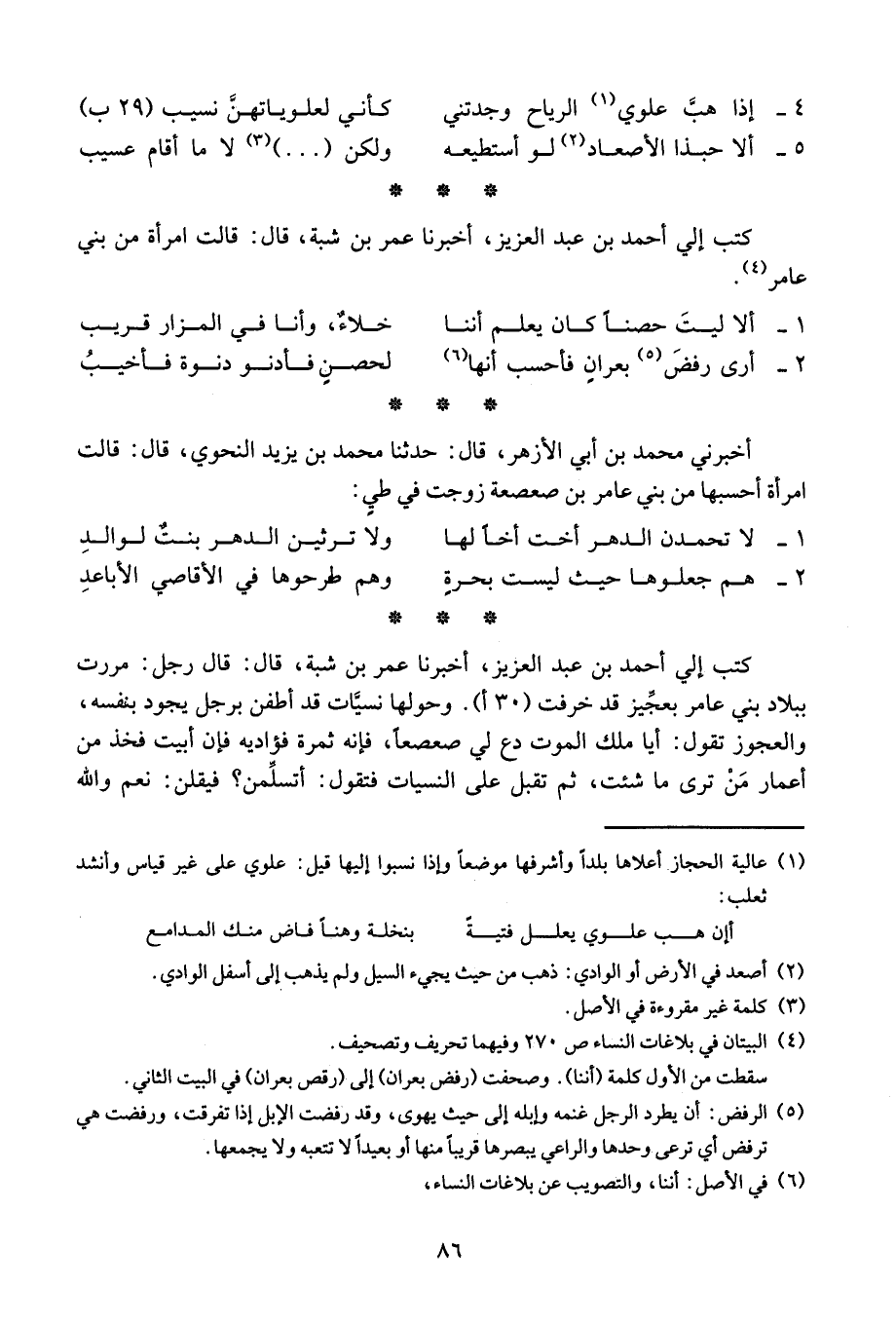 كتب إلي أحمد بن عبد العزيز، أخبرنا عمر بن شبة، قال: قالت امرأة من بني عامر.
