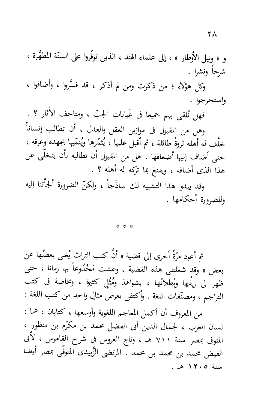 و " ونيل الأوطار " إلى علماء الهند، الذين توفروا على السنة المطهرة، شرحاً ونشراً.