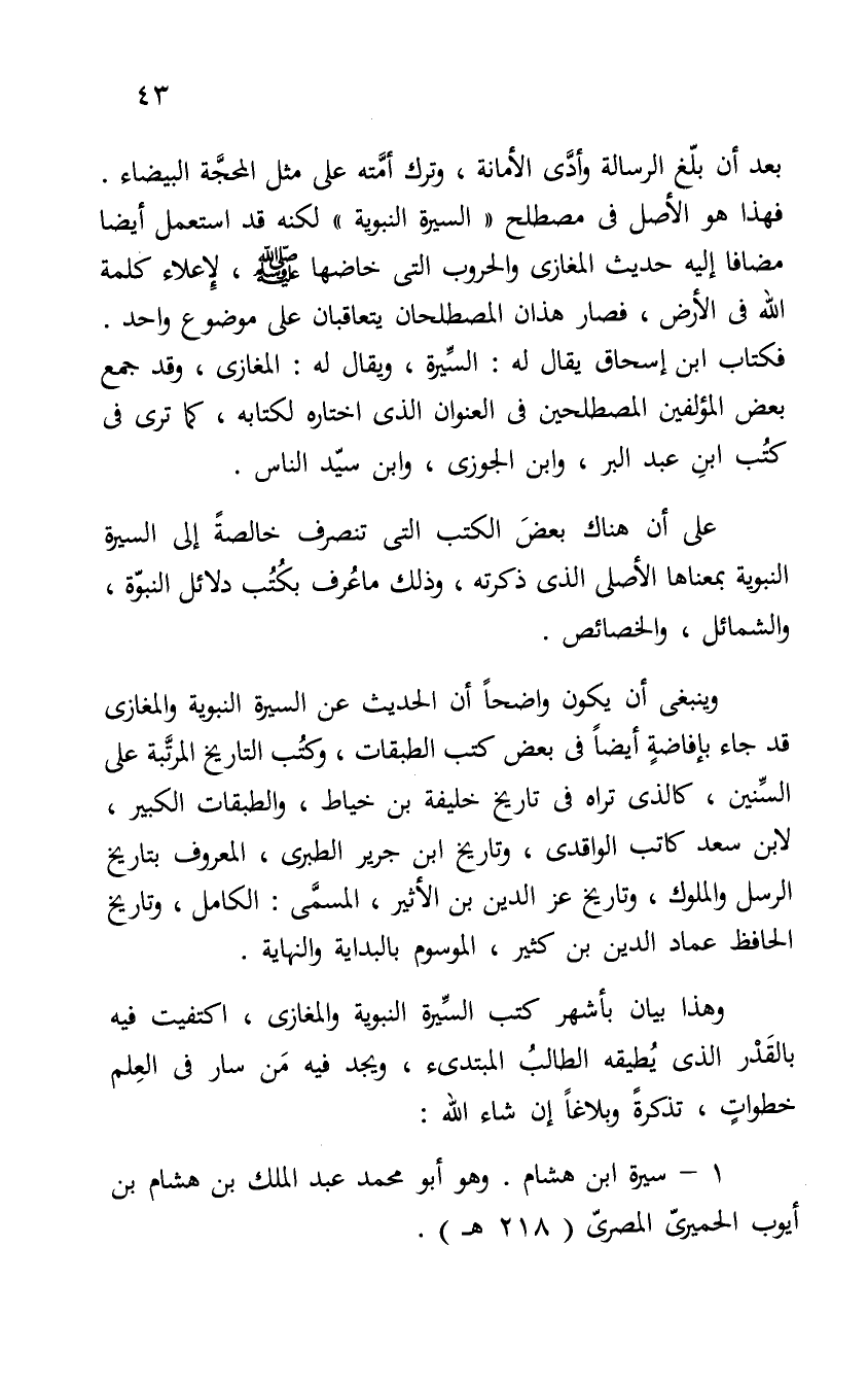 وهذا بيان أشهر كتب السيرة النبوية والمغازي، واكتفيت فيه بالقدر الذي يطيقه الطالب المبتدئ، ويجد فيه من سار في العلم خطوات تذكرة وبلاغاً إن شاء الله: