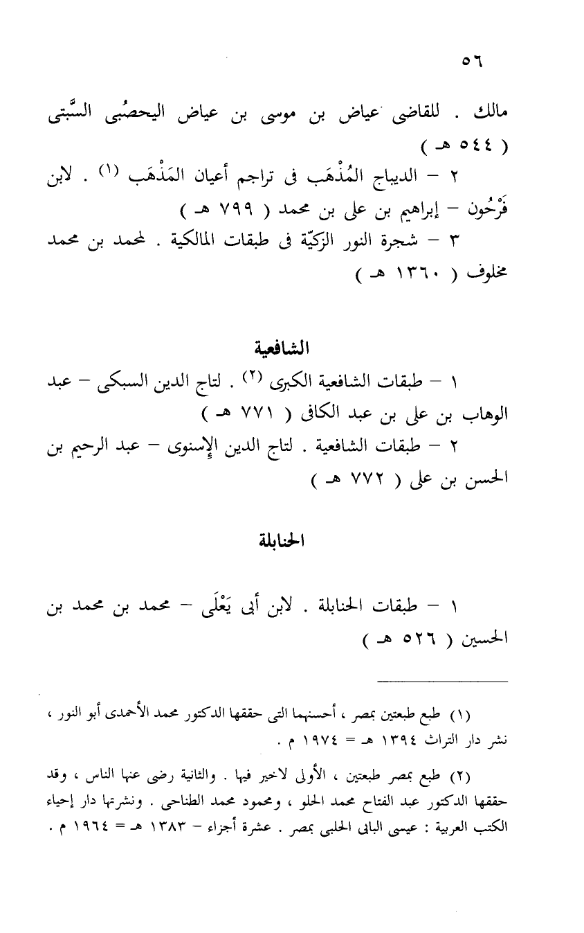 3- شجرة النور الزكية في طبقات المالكية. لمحمد بن محمد مخلوف (1360هـ) .