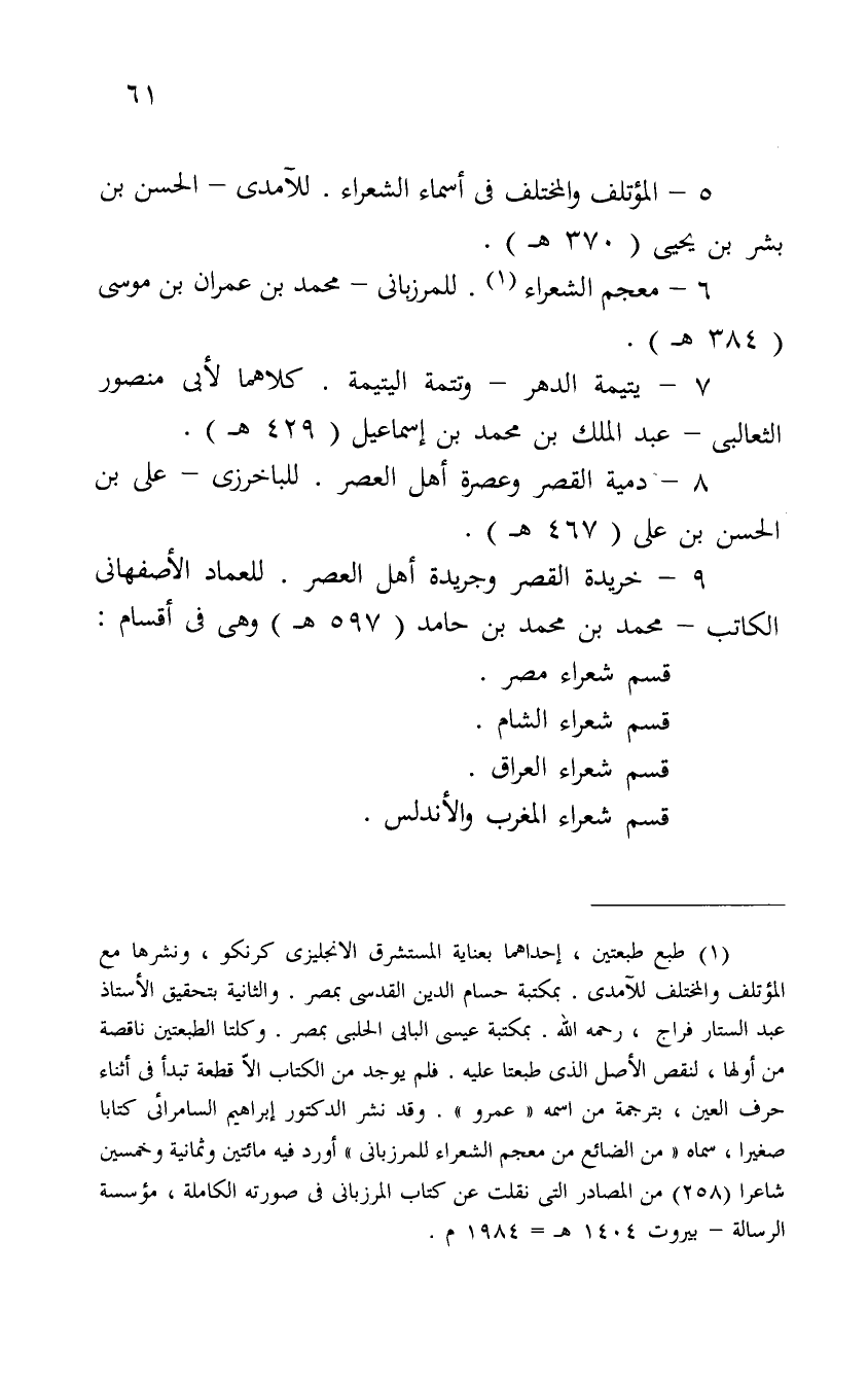 5- المؤتلف والمختلف في أسماء الشعراء. للآمدي - الحسن بن بشر بن يحيى (370هـ) .