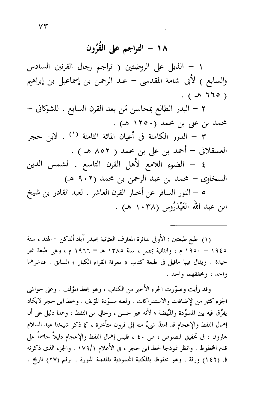 (¬1) طبع طبعتين: الأولى بدائرة المعارف العثمانية بحيدر آباد ألدكن - الهند، سنة 1954 - 1950م، والثانية بمصر، سنة 1385هـ - 1966م، وهي طبعة غير جيدة، ويقال فيها ما قيل في طبعات كتاب " معرفة القراء الكبار" السابق. فناشرهما واحد، ومحققها واحد.