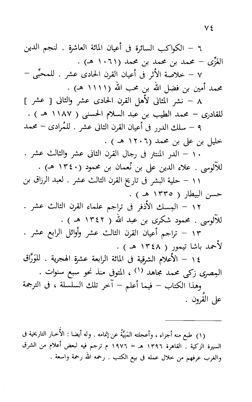 14- الأعلام الشرقية في المائة الرابعة عشرة الهجرية. للوراق المصري زكي محمد مجاهد (¬1) ، المتوفى منذ نحو سبع سنوات