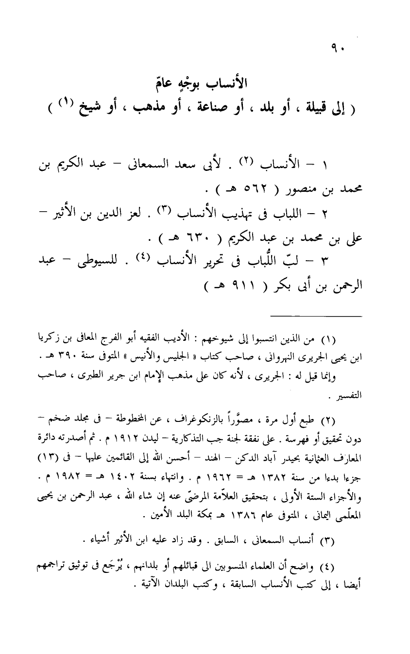 (¬4) واضح أن العلماء المنسوبين إلى قبائلهم أو بلدانهم، يرجع في توثق تراجمهم أيضاً، إلى كتب الأنساب السابقة، وكتب البلدان الآتية.