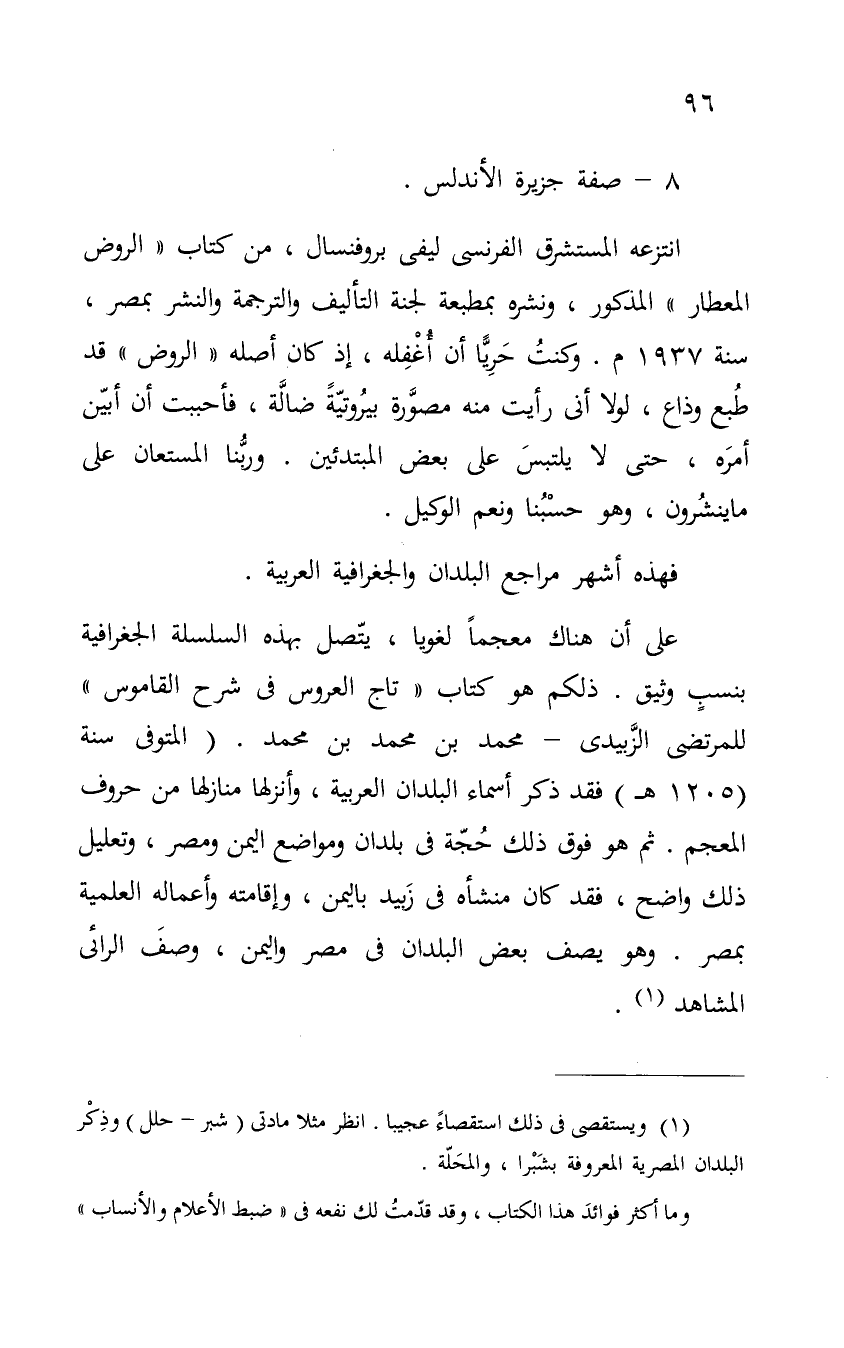 (¬1) ويستقصى في ذلك استقصاء عجيباً. انظر مثلاً مادتي (شبر - حلل) وذكر البلدان المصرية المعروفة بشبرا، والمحلة.