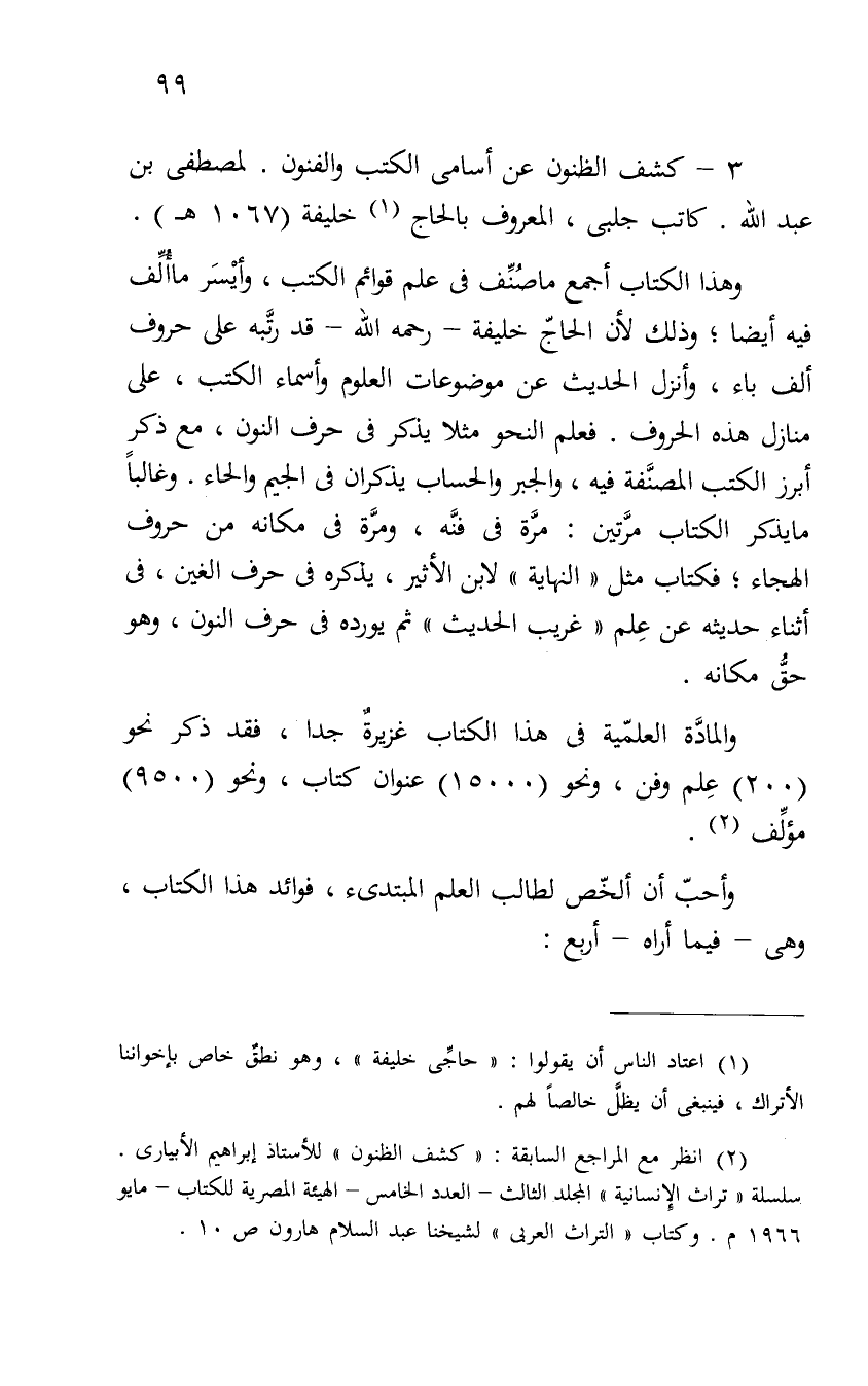 3- كشف الظنون عن أسامى الكتب والفنون؟ لمصطفى بن عبد الله. كاتب جلبى، المعروف بالحاج (¬1) خليفة (1067هـ) .