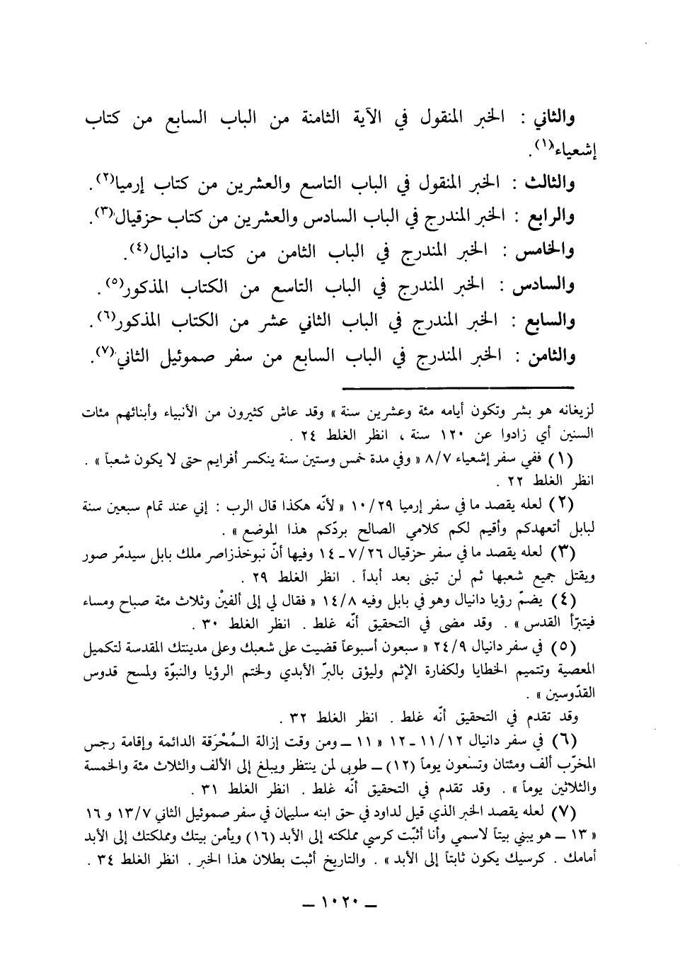 والخامس: الخبر المندرج في الباب الثامن من كتاب دانيال.