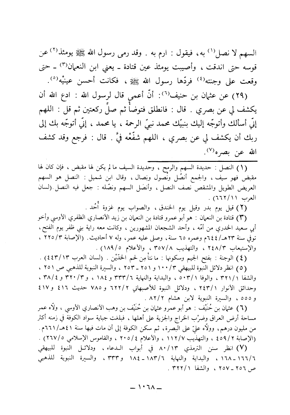 29- عن عثمان بن حنيف أن أعمى قال لرسول الله: ادع الله أن يكشف لي عن بصري. قال: فانطلق فتوضأ ثم صلِ ركعتين، ثم قل: اللهم إني أسألك وأتوجه إليك بنبيك محمد نبي الرحمة، يا محمد إني أتوجه بك إلى ربك أن يكشف لي عن بصري، اللهم شفعه في. قال: فرجع وقد كشف الله عن بصره.