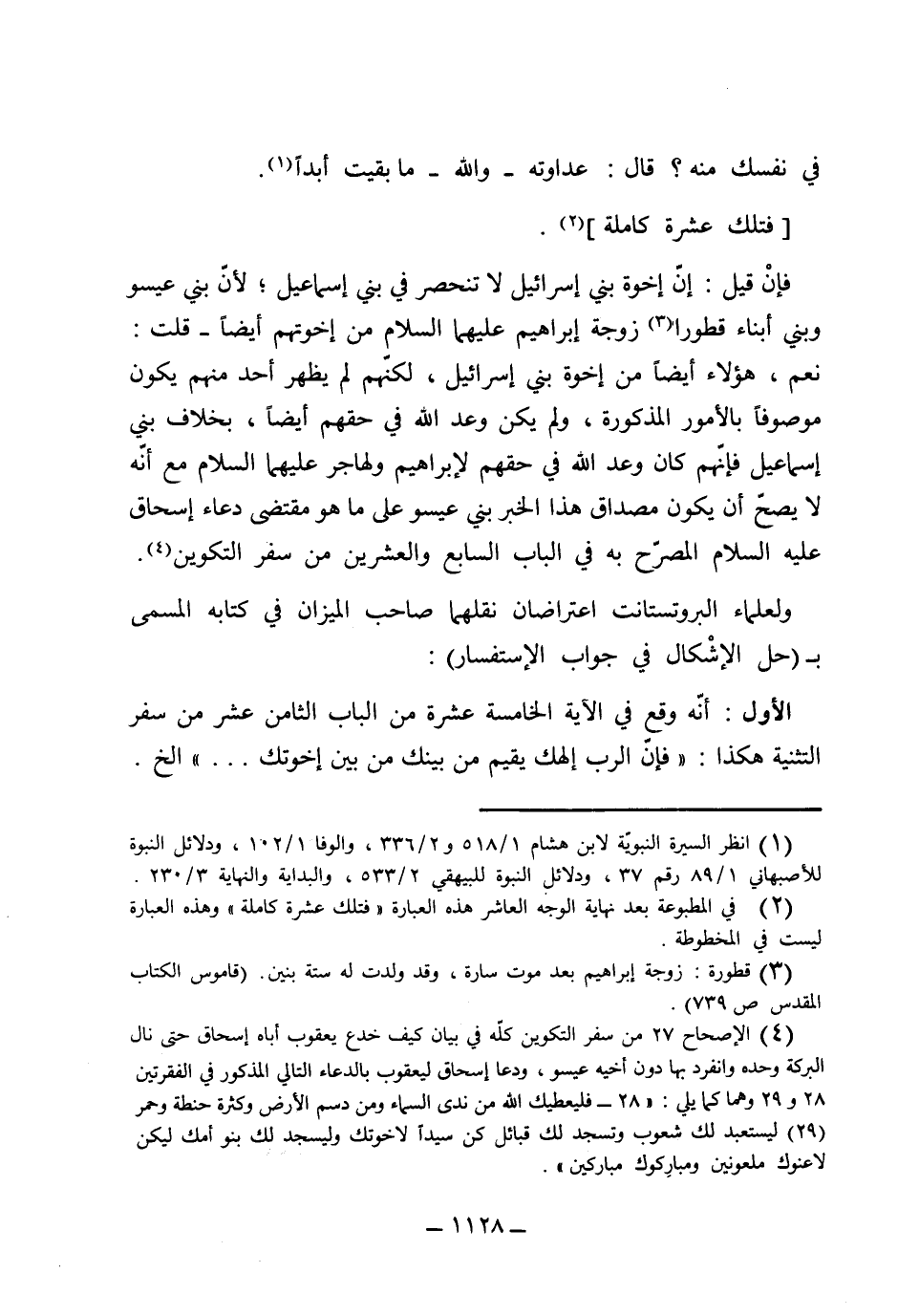 الأول: أنه وقع في الآية الخامسة عشر من الباب الثامن عشر من سفر الاستثناء هكذا: (فإن الرب إلهك يقيم من بينك من بين أخوتك) الخ.