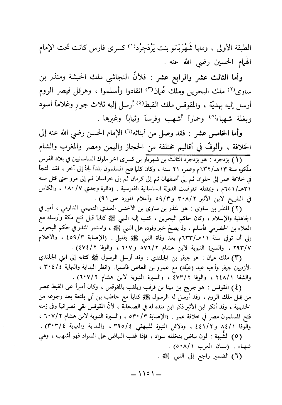 الطبقة الأولى، ومنها شهربانو بنت يزدجرد، كسرى فارس، كانت تحت الإمام الهمام الحسين رضي الله عنه.
