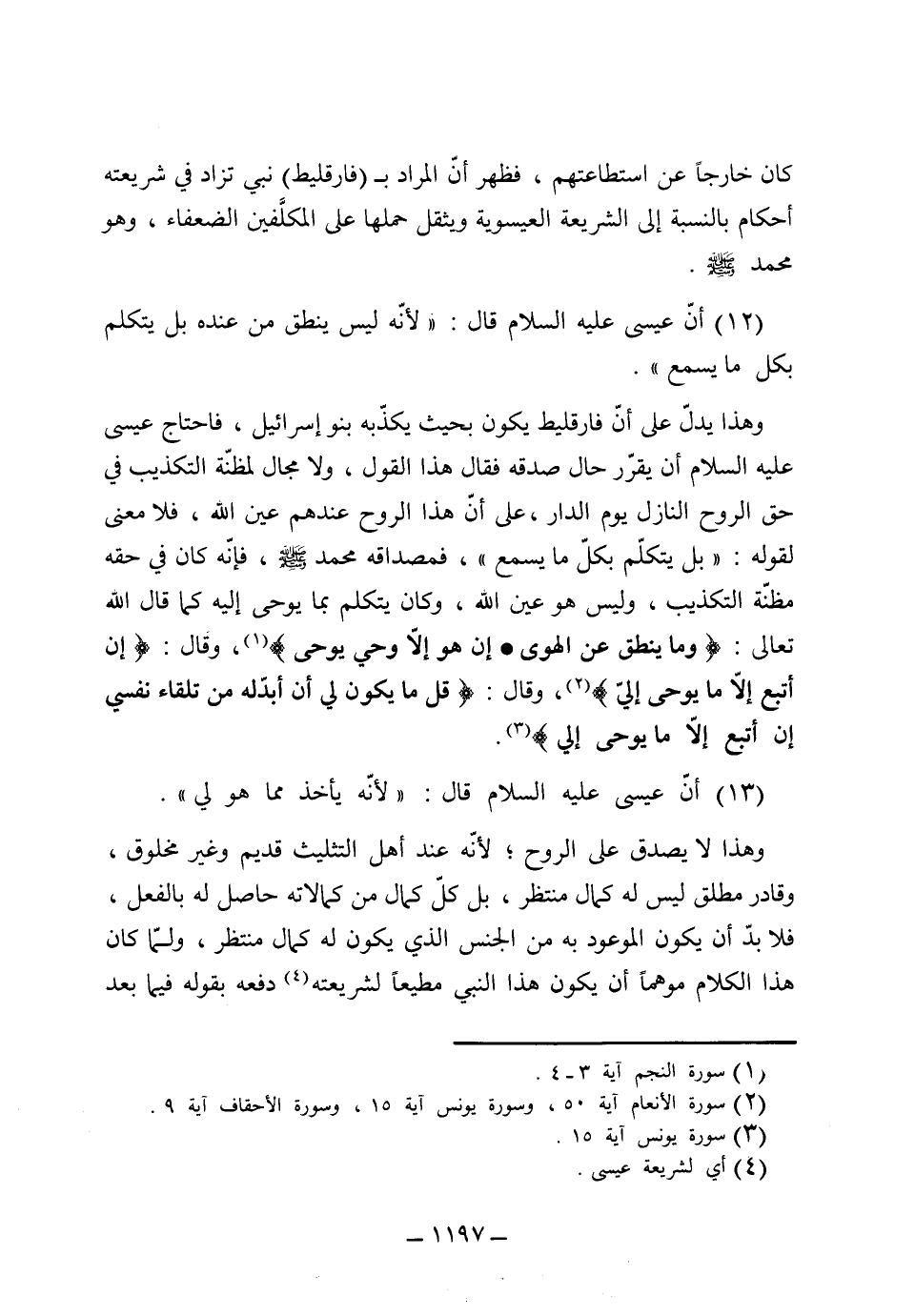 [12] أن عيسى عليه السلام قال: (ليس ينطق من عنده بل يتكلم بكل ما يسمع) .