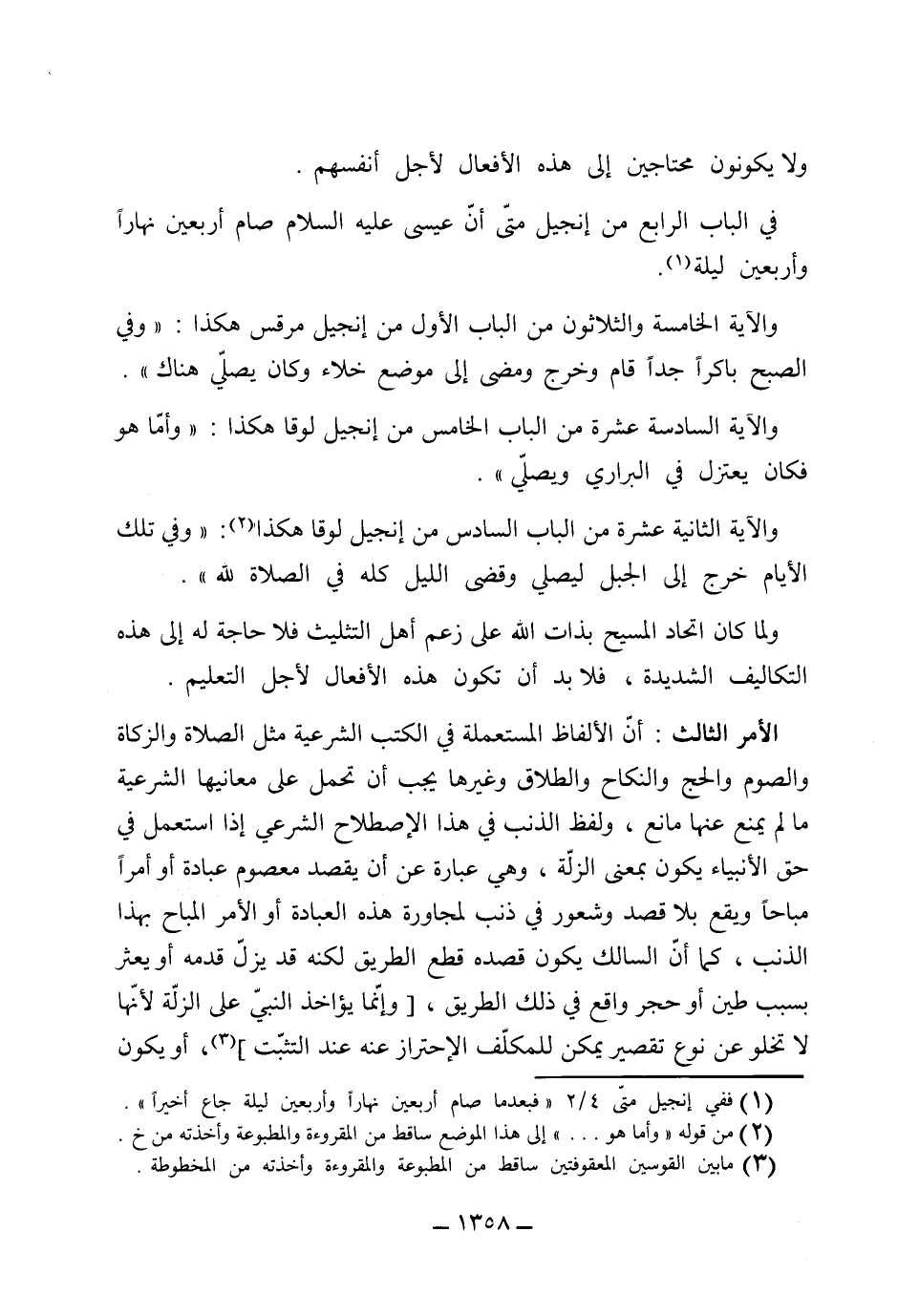 ولما كان اتحاد المسيح بذات الله على زعم أهل التثليث، فلا حاجة له إلى هذه التكاليف الشديدة، فلا بد أن تكون هذه الأفعال لأجل التعليم.