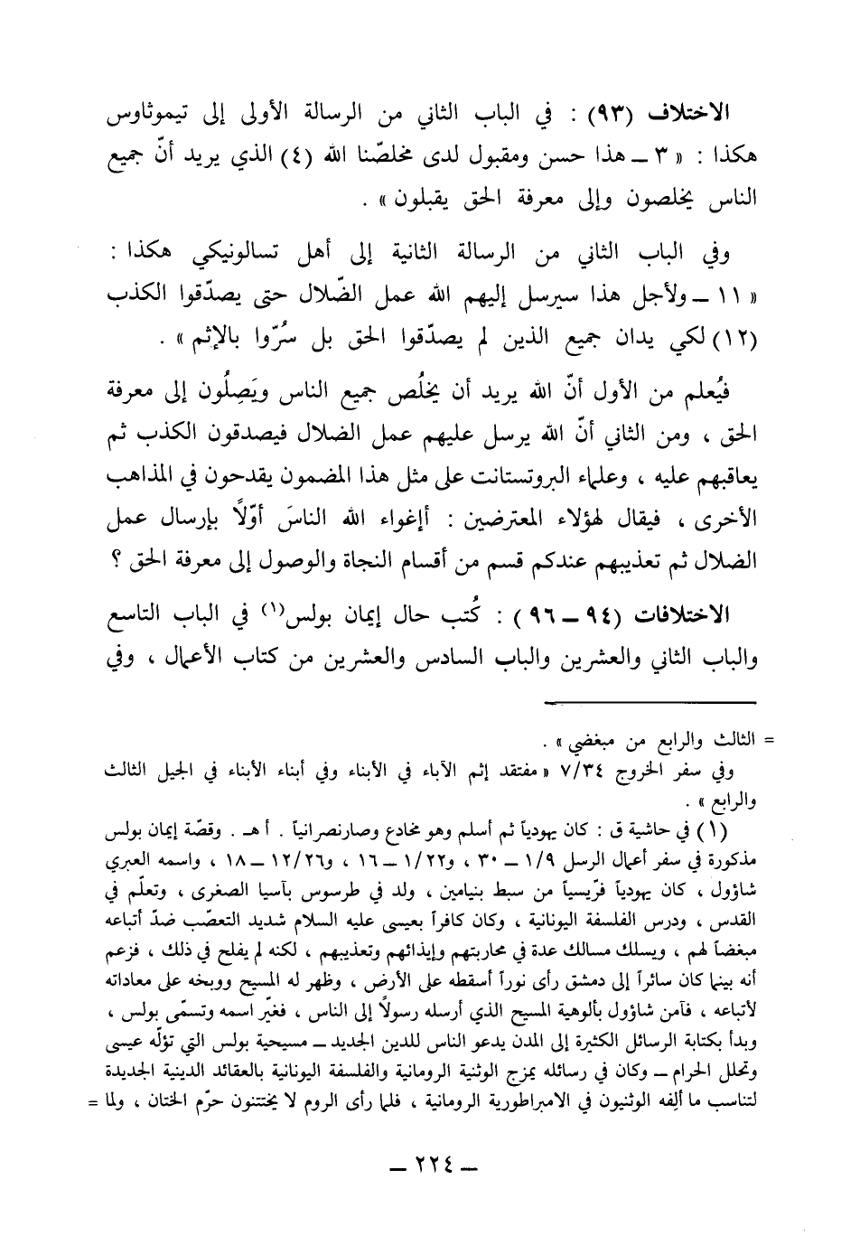 الأختلاف 94 و 95 و 96: كتب حال إيمان بولس في الباب التاسع والباب الثاني والعشرين والباب السادس والعشرين من كتاب الأعمال، وفي