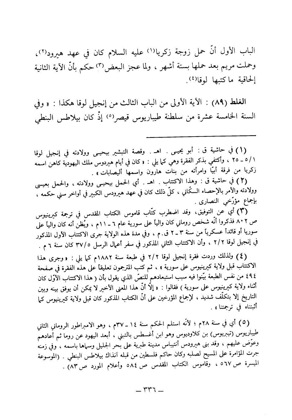 الغلط [89] الآية الأولى من الباب الثالث من إنجيل لوقا هكذا: "وفي السنة الخامسة عشرة من سلطنة طيباريوس قيصر إذ كان بيلاطس