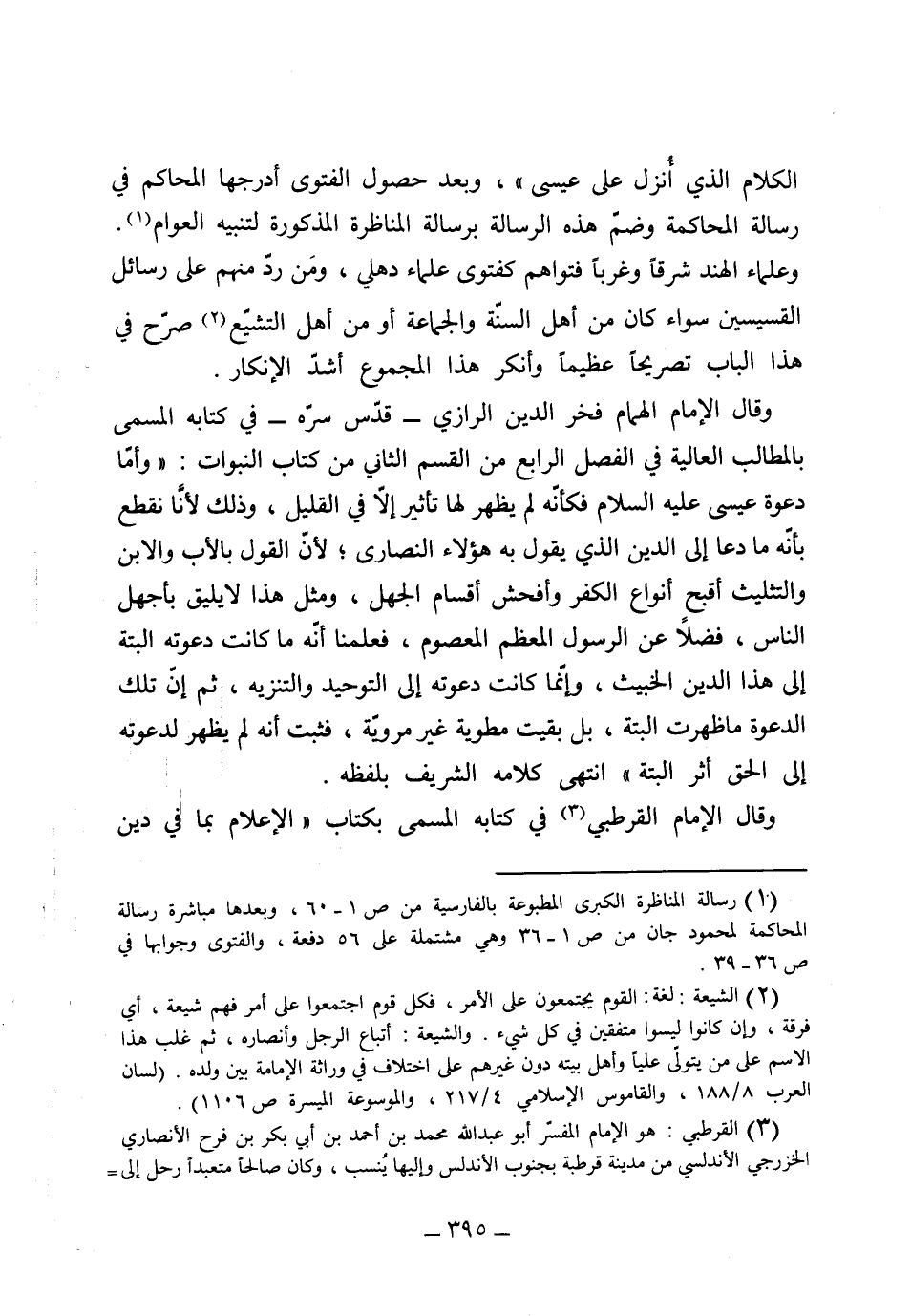 وقال الإمام القرطبي في كتابه المسمى بكتاب الإعلام بما في دين