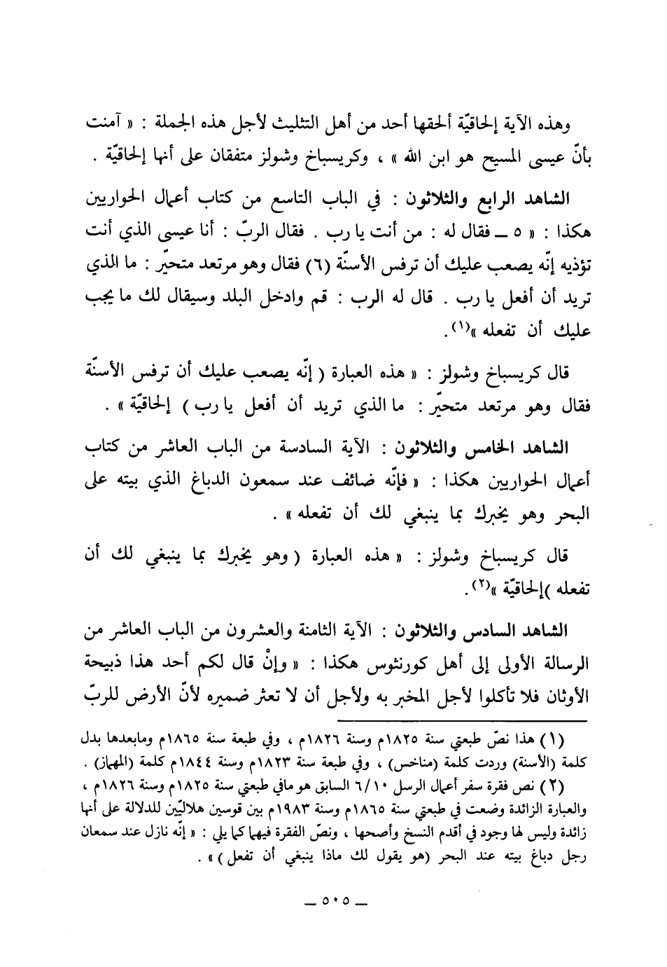 (الشاهد الرابع والثلاثون) في الباب التاسع من كتاب أعمال الحواريين هكذا: 5 "فقال له من أنت يا رب فقال الرب أنا عيسى الذي أنت تؤذيه، إنه يصعب عليك أن ترفس الأسَنِّة" 6 "فقال وهو مرتعد متحير ما الذي تريد أن أفعل يا رب؟، قال له الرب قم وادخل البلد، وسيقال لك ما يجب عليك أن تفعله" قال كريسباخ وشولز: (هذه العبارة "إنه يصعب عليك أن ترفس الأسنة فقال وهو مرتعد متحير ما الذي تريد ان أفعل يا رب" إلحاقية) .
