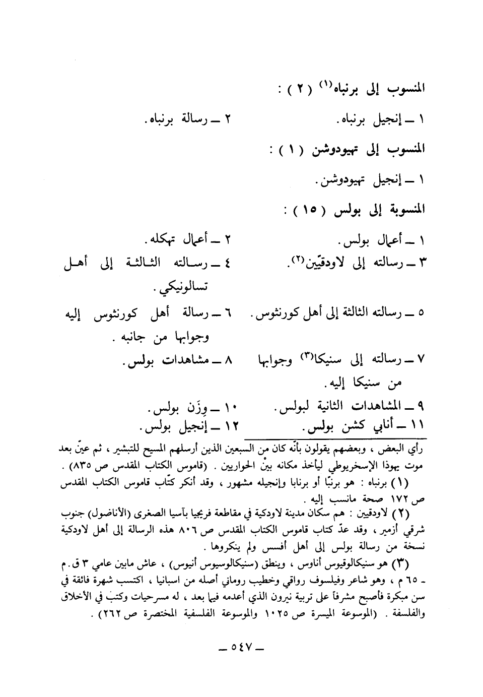 (أعمال بولس) . (أعمال تهكله) . (رسالته إلى لا دوقيين) . (رسالته الثالثة إلى أهل تسالونيقي) . (رسالته الثالثة إلى أهل قورنثيوس) . (رسالة أهل قونثيوس إليه وجوابها من جانبه) . (رسالته إلى سنيكا وجوابها من سنيكا إليه) . (مشاهدات بولس) . (المشاهدات الثانية لبولس) . (وِزَنْ بولس) . (أنابي كِشَنْ بولس) . (إنجيل بولس) .