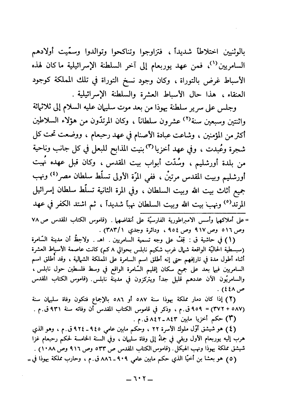 القليلة بالوثنيين اختلاطاً شديداً، فتزاوجوا وتناكحوا وتوالدوا وسميت أولادهم السامريين فمن عهد يوربعام إلى آخر السلطنة الإسرائيلية ما كان لهذه الأسباط غرض بالتوراة، وكان وجود نسخ التوراة في تلك المملكة كوجود العنقاء. هذا حال الأسباط العشرة والسلطنة الإسرائيلية.