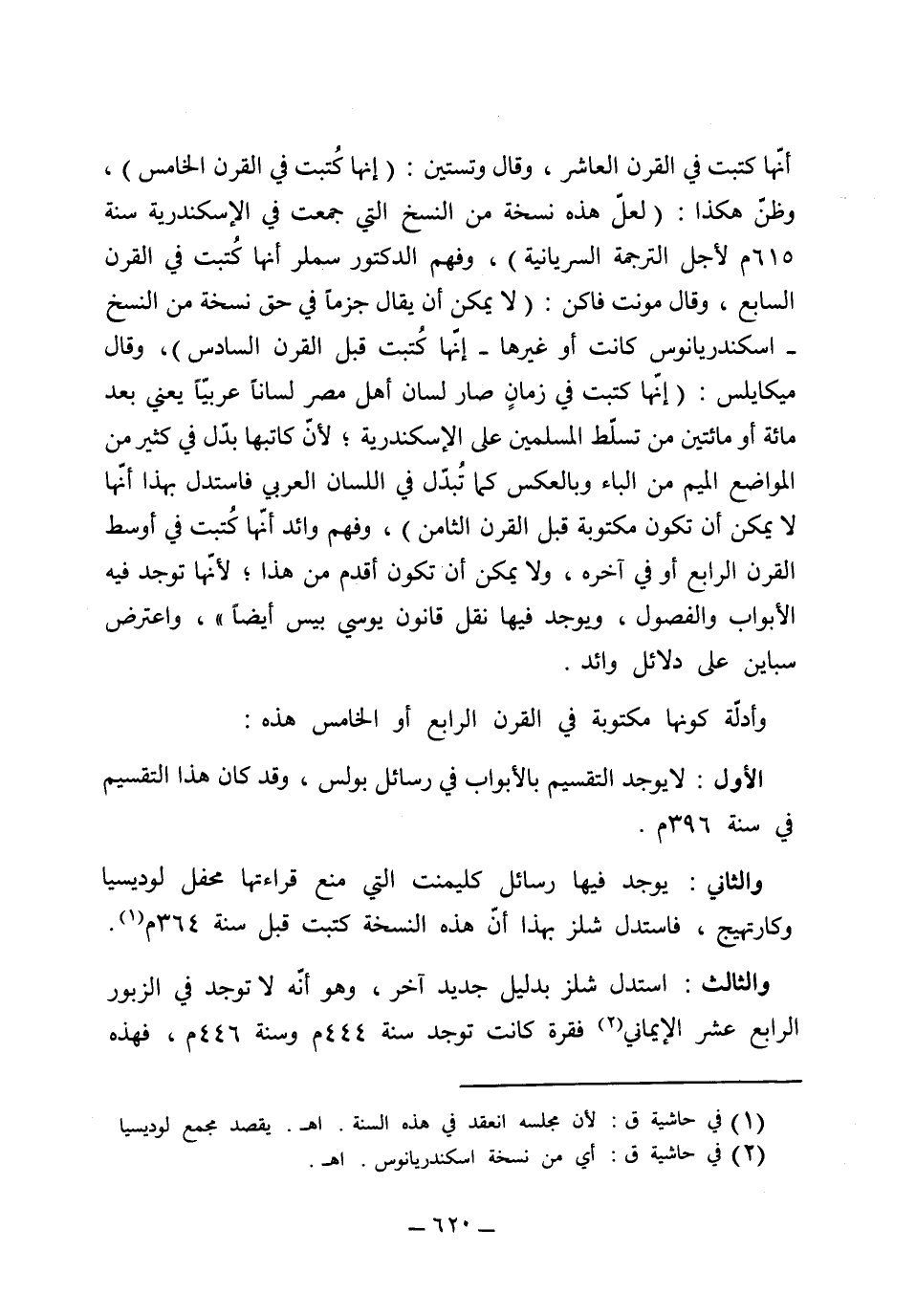 أنها كتبت في القرن العاشر، وقال وتستين إنها كتبت في القرن الخامس وظن هكذا لعل هذه نسخة من النسخ التي جمعت في اسكندرية سنة 615 لأجل الترجمة السريانية، وفهم داكتر سملر أنها كتبت في القرن السابع، وقال مونت فاكن لا يمكن أن يقال جزماً في حق نسخة من نسخ اسكندر يانوس كانت أو غيرها إنها كتبت قبل القرن السادس، وقال ميكايلس إنها كتبت في زمان صار لسان أهل مصر فيه لساناً عربياً، يعني بعد مائة أو مائتين من تسلط المسلمين على اسكندرية، لأن كاتبه بدّل في كثير من المواضع الميم من الباء وبالعكس، كما تبدل في اللسان العربي فاستدل بهذا أنها لا يمكن أن تكون مكتوبة قبل القرن الثامن، وفهم وايد أنها كتبت في وسط القرن الرابع أو في آخره، ولا يمكن أن يكون أقدم من هذا لأنها لا توجد فيها الأبواب والفصول، ويوجد فيها نقل قانون يوسي بَيَسْ، واعتراض إسباين على دلائل وايد، وأدلة كونها مكتوبة في القرن الرابع والخامس هذا الأول لا يوجد التقسيم بالأبواب في رسائل بولس وقد كان هذا التقسيم في سنة 396، والثاني يوجد فيها رسائل كليمنت التي منع قراءتها محفل لوديسيا وكارتهيج، فاستدل شلز بهذا أن هذه النسخة كتبت قبل سنة 364، والثالث استدل شلز بدليل جديد آخر وهو أنه يوجد في الزبور الرابع عشر الإيماني فقرة كانت توجد سنة 444 وسنة 446، فهذه