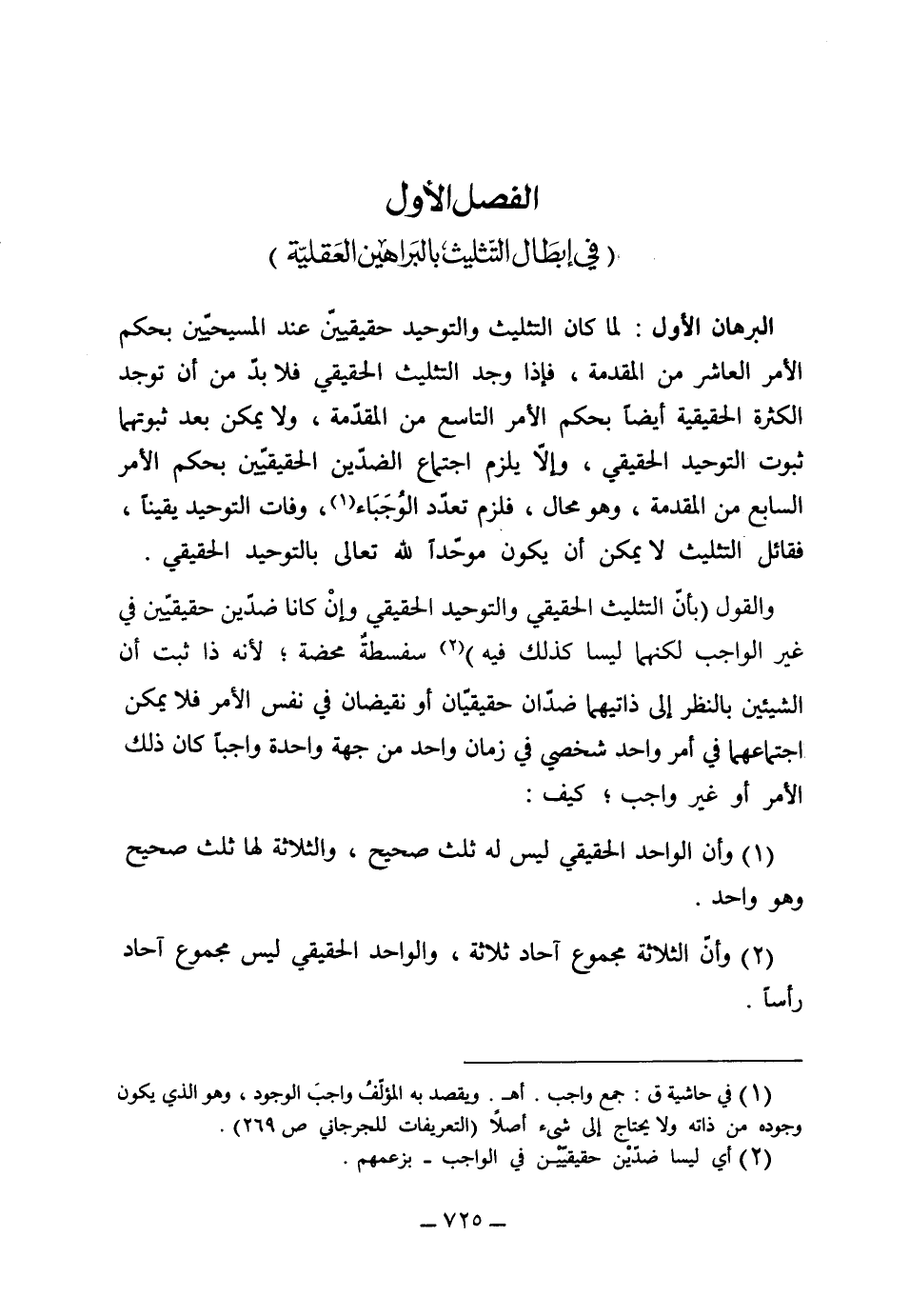 الفصل الأول: في إبطال التثليث بالبراهين العقلية