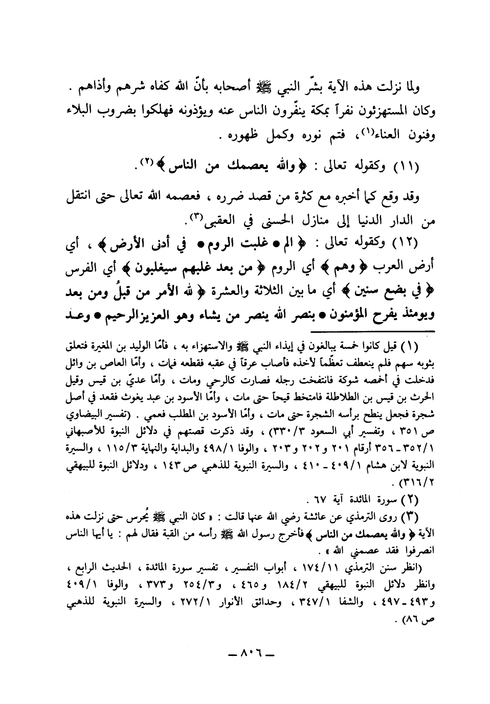 لما نزلت هذه الآية بشر النبي صلى الله عليه وسلم أصحابه بأن الله كفاه شرهم وأذاهم وكان المستهزئون نفراً بمكة ينفرون الناس عنه ويؤذونه فهلكوا بضروب البلاء وفنون العناء فتم نوره وكمل ظهوره. 11- وكقوله تعالى: {والله يعصمك من الناس} . وقد وقع كما أخبر مع كثرة من قصد ضره فعصمه الله تعالى، حتى انتقل من الدار الدنيا إلى منازل الحسنى في العقبى. 12- وكقوله تعالى: {الم غلبت الروم في أدنى الأرض} أي أرض العرب {وهم} أي الروم {من بعد غلبهم سيغلبون} أي الفرس {في بضع سنين} أي ما بين الثلاث والعشر {ويومئذ يفرح المؤمنون بنصر الله ينصر من يشاء وهو العزيز الرحيم. وعد