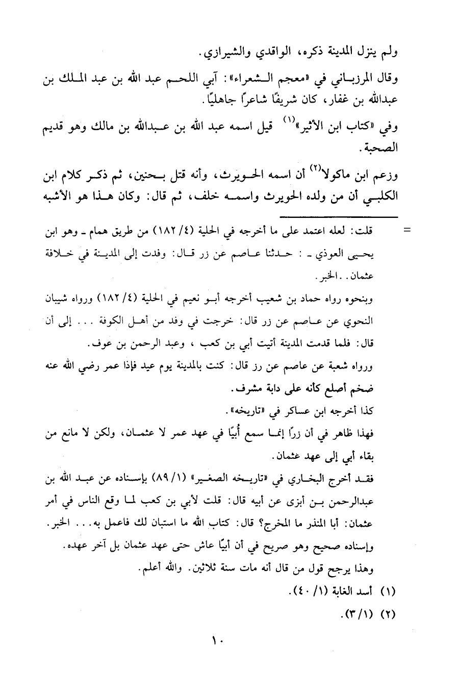 وإسناده صحيح وهو صريح في أن أبيا عاش حتى عهد عثمان بل آخر عهده.