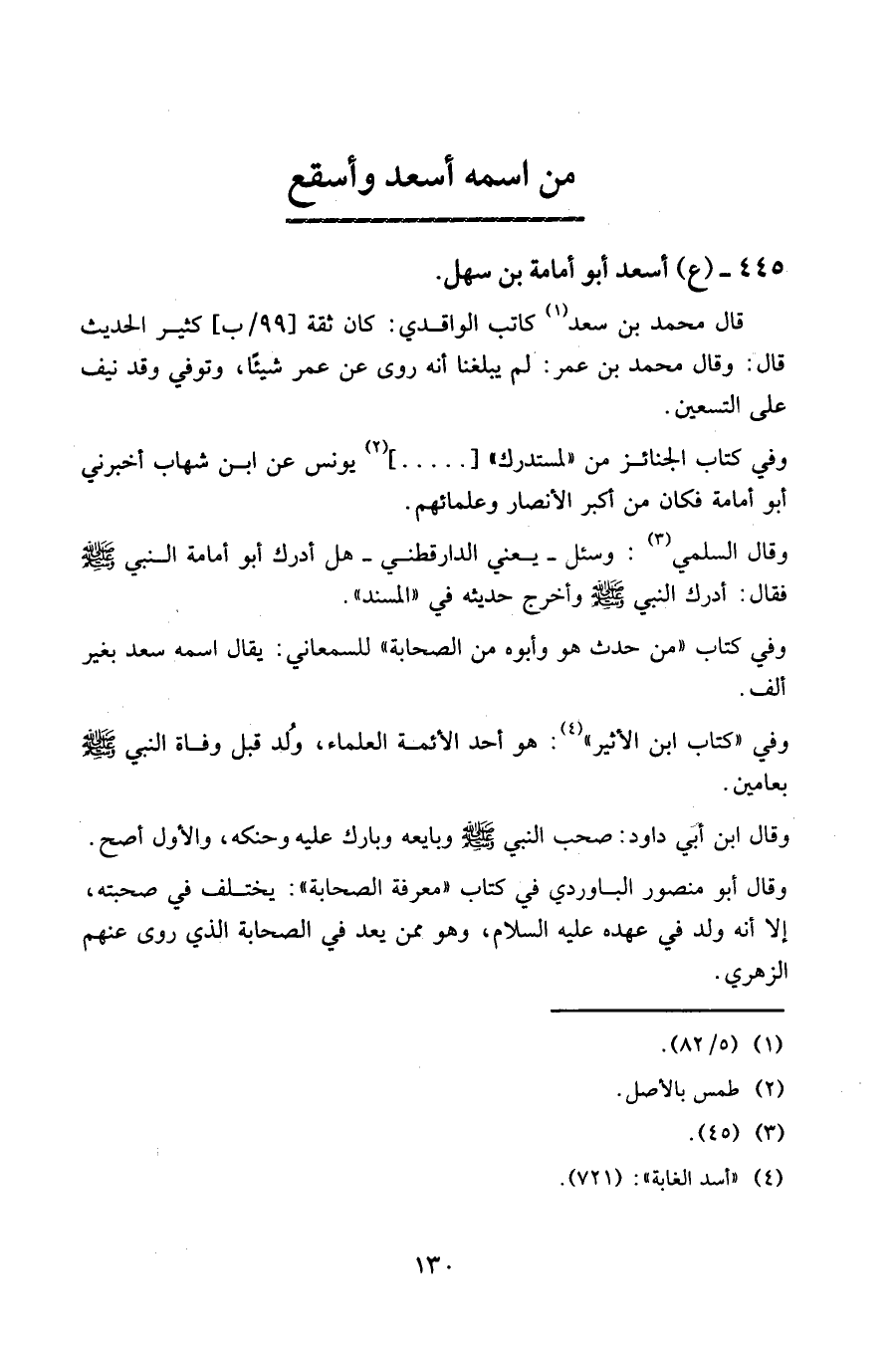 وفي كتاب (من حدث هو وأبو من الصحابة) للسمعاني: يقال اسمه سعد بغير ألف.
