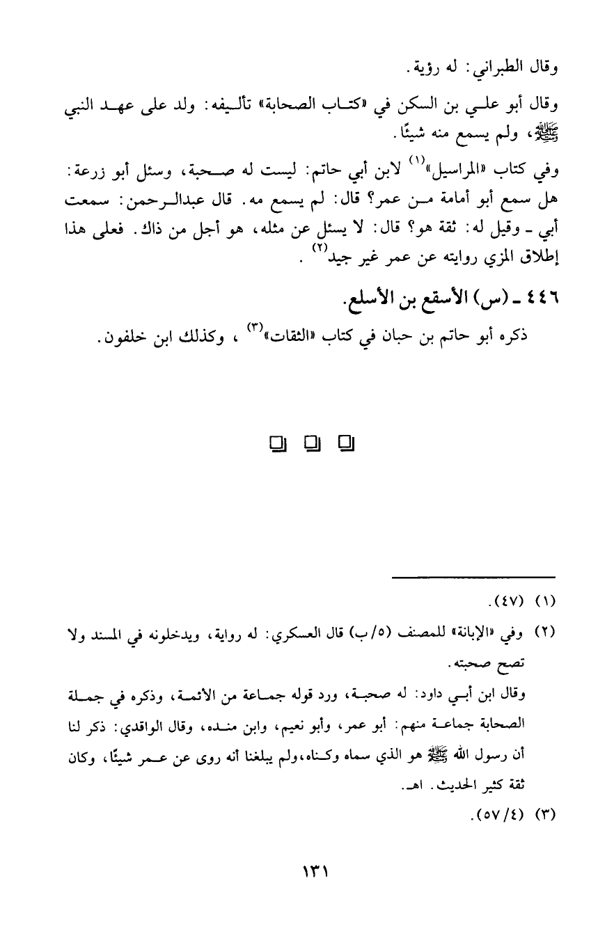 (2) وفي (الإبانة) للمصنف (5/ب) قال العسكري: له رواية، ويدخلونه في المسند ولا تصح صحبته.