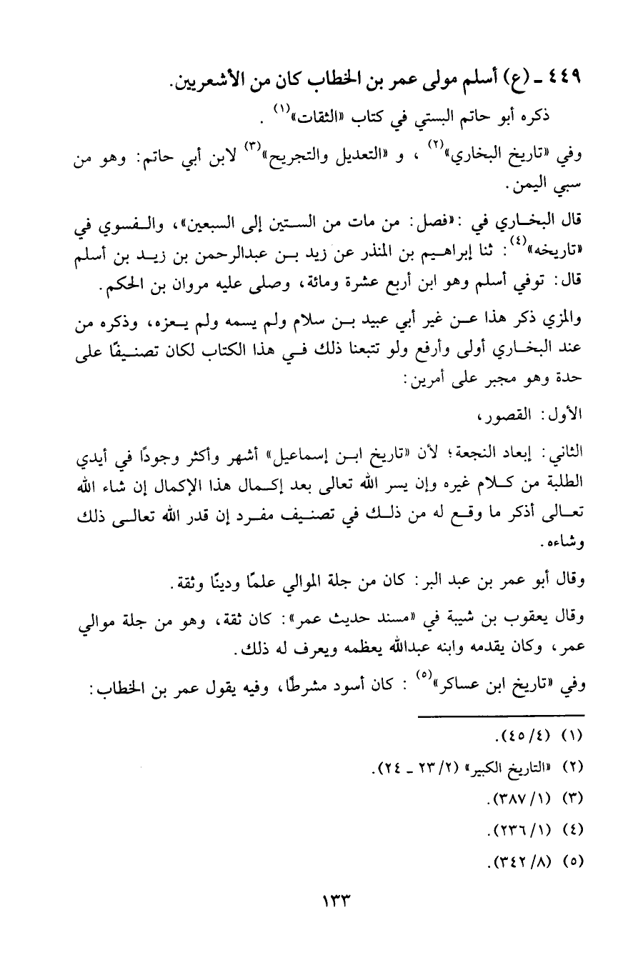 449- (ع) أسلم مولى عمر بن الخطاب كان من الأشعريين.
