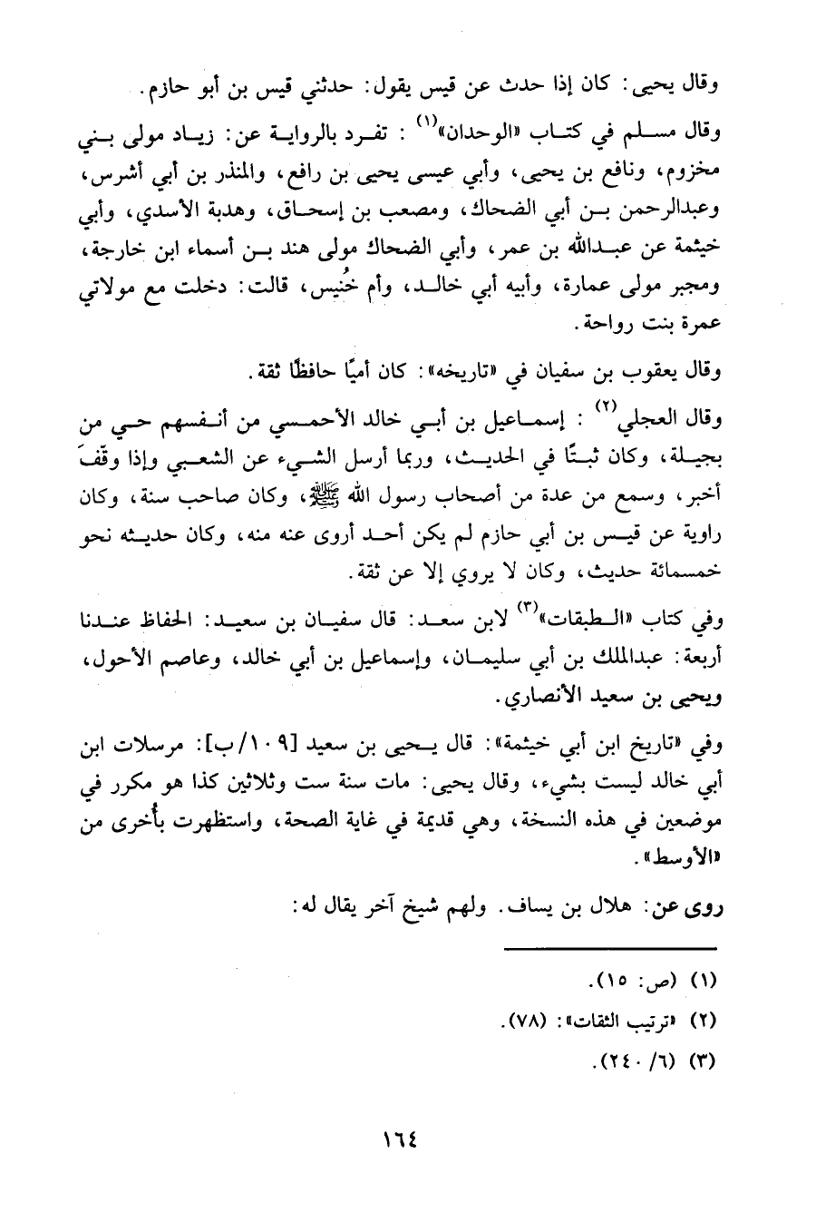 وفي كتاب (الطبقات) (3) لابن سعد: قال سفيان بن سعيد: الحفاظ عندنا أربعة: عبد الملك بن أبي سليمان، وإسماعيل بن أبي خالد، وعاصم الأحول، ويحيى بن سعيد الأنصاري.