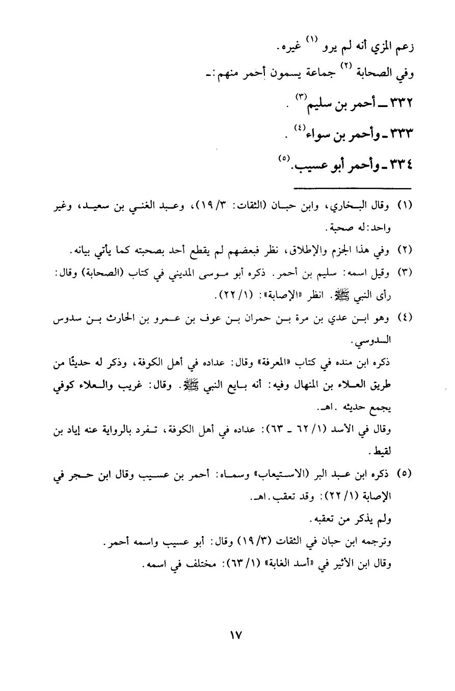 (5) ذكره ابن عبد البر (الاستيعاب) وسماه: أحمر بن عسيب وقال ابن حجر في الإصابة (1/22): وقد تعقب. اهـ.