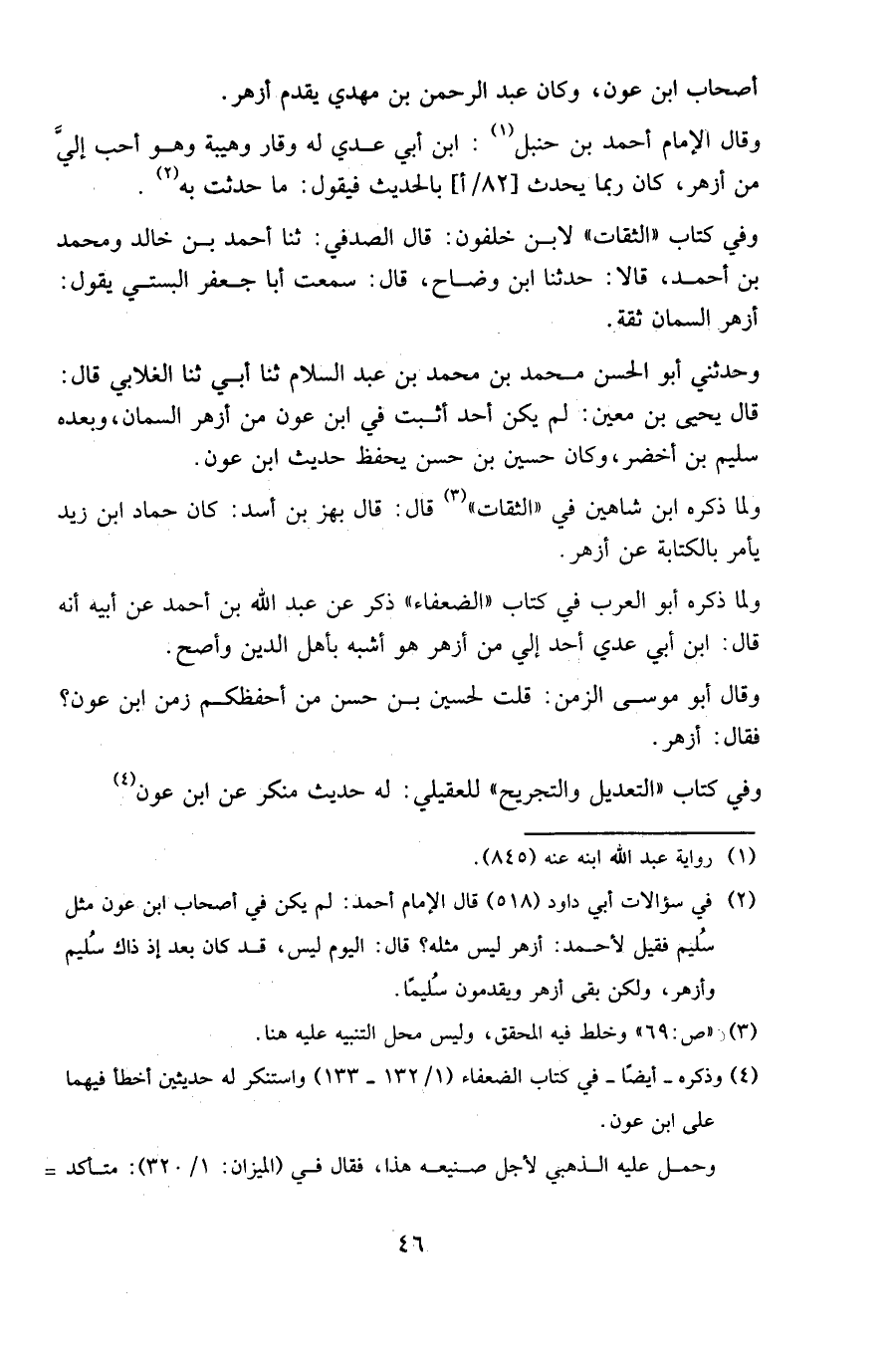 أصحاب ابن عون، وكان عبد الرحمن بن مهدي يقدم أزهر.