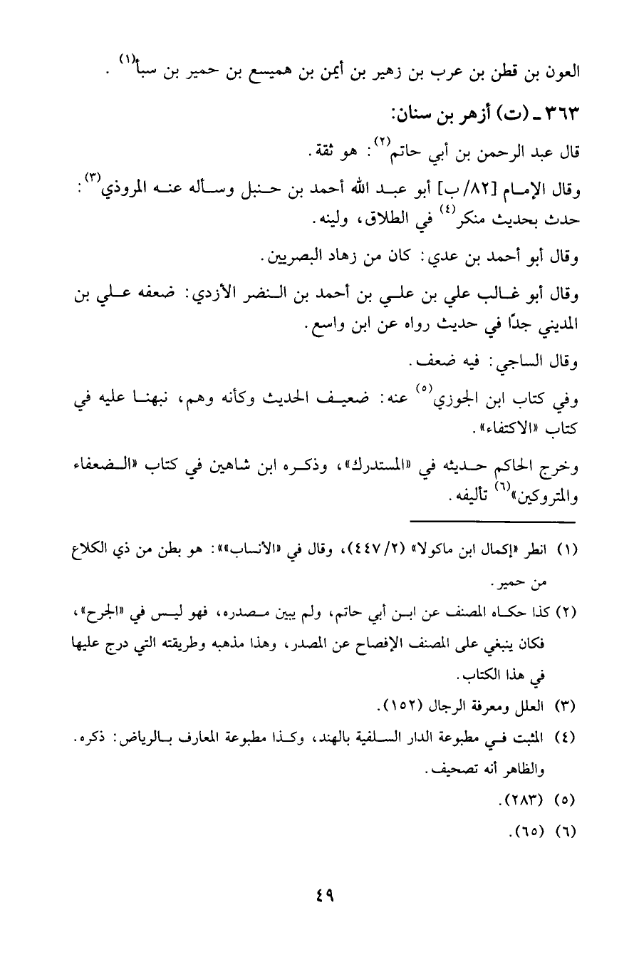 363 - (ت) أزهر بن سنان: قال عبد الرحمن بن أبي حاتم (2): هو ثقة.