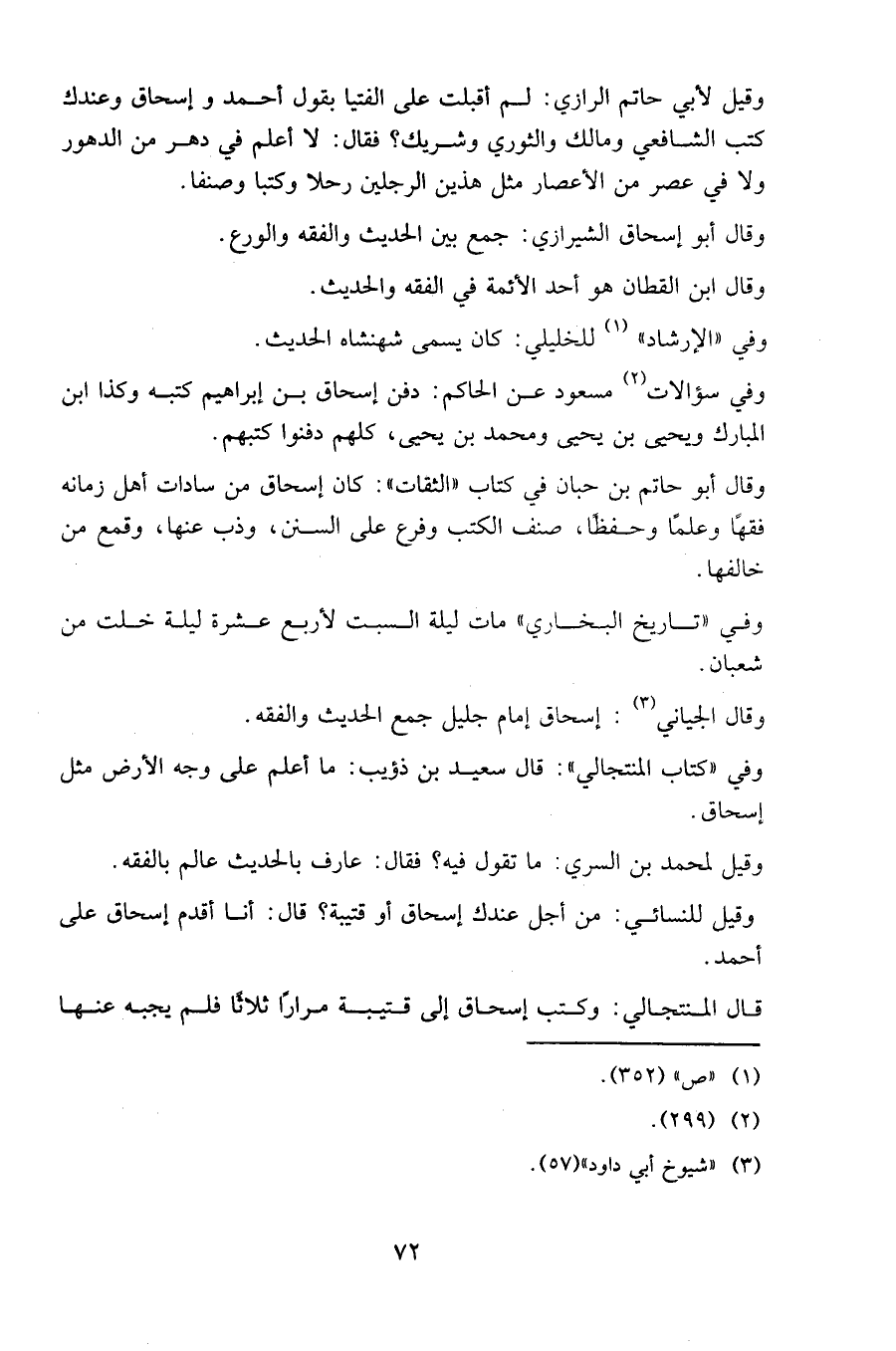 وقيل للنسائي: من أجل عندك إسحاق أو قتيبة ؟ قال: أنا أقدم إسحاق على أحمد.