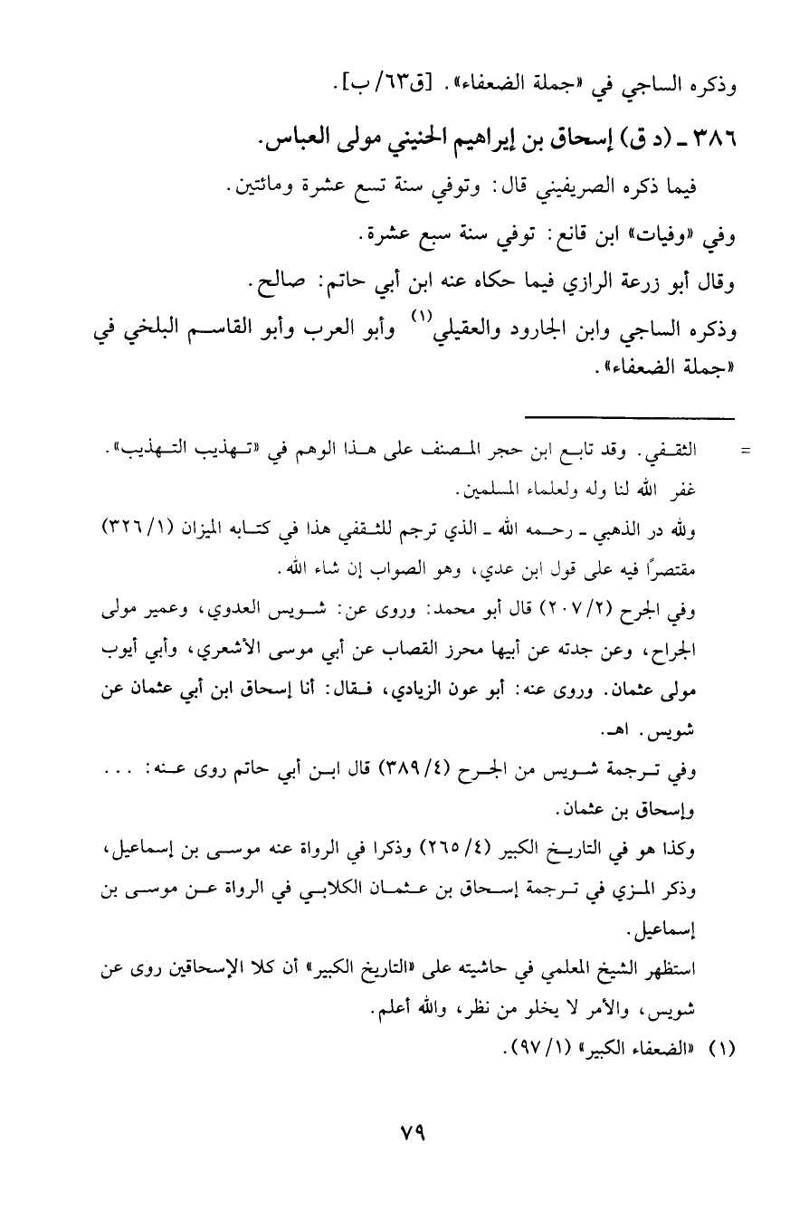386- (د ق) إسحاق بن إبراهيم الحنيني مولى العباس.