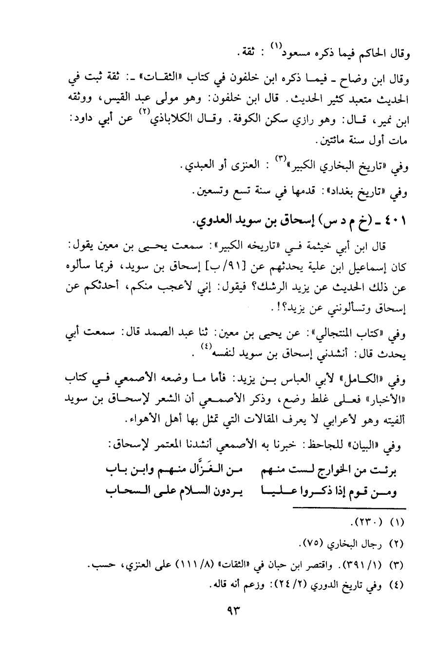 وفي (كتاب المنتجالي): عن يحيى بن معين: حَدَّثنا عبد الصمد قال: سمعت أبي يحدث قال: أنشدني إسحاق بن سويد لنفسه (4).