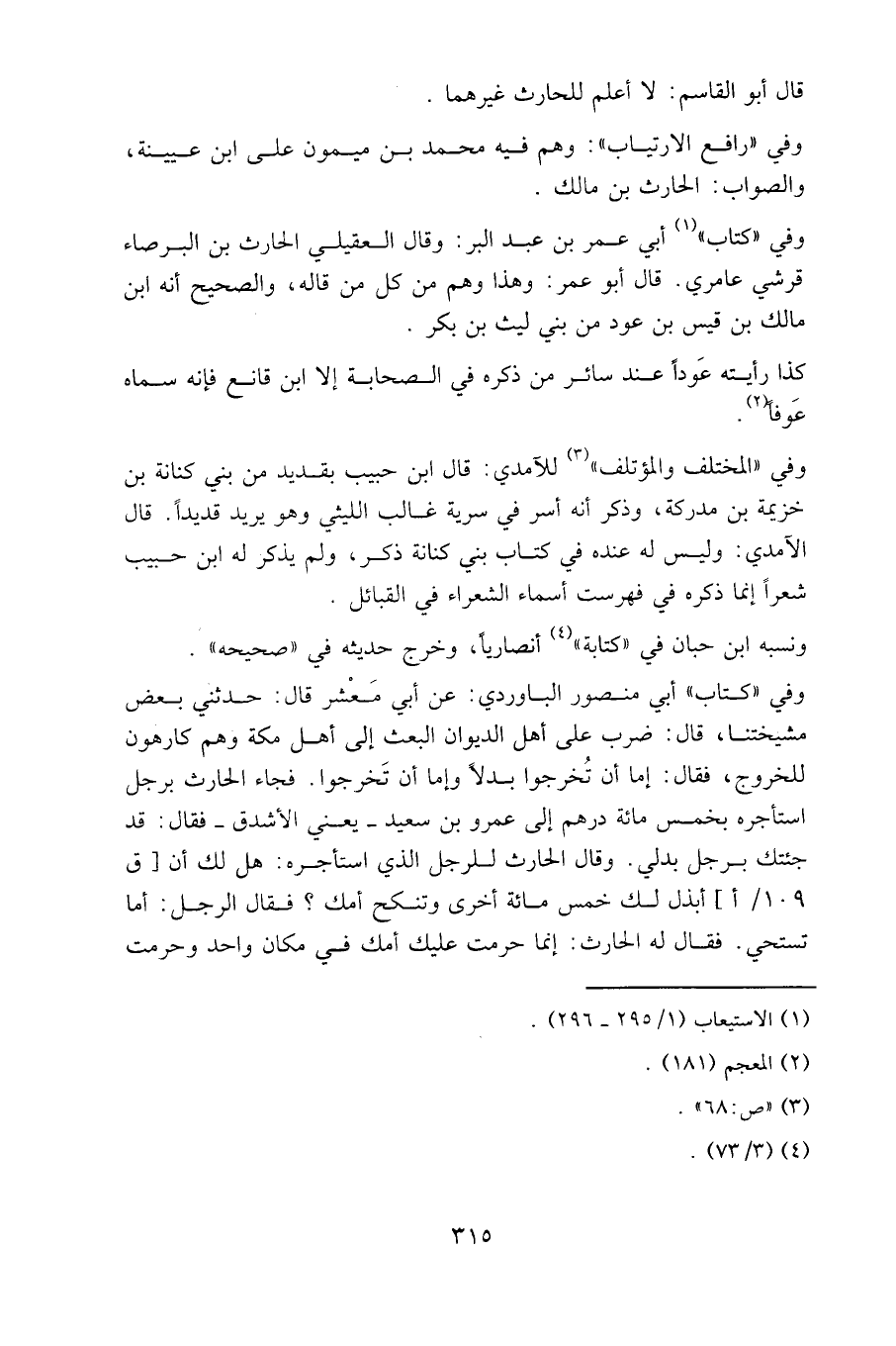 وفي "كتاب" أبي عمر بن عبد البر: وقال العقيلي الحارث بن البرصاء قرشي عامري.