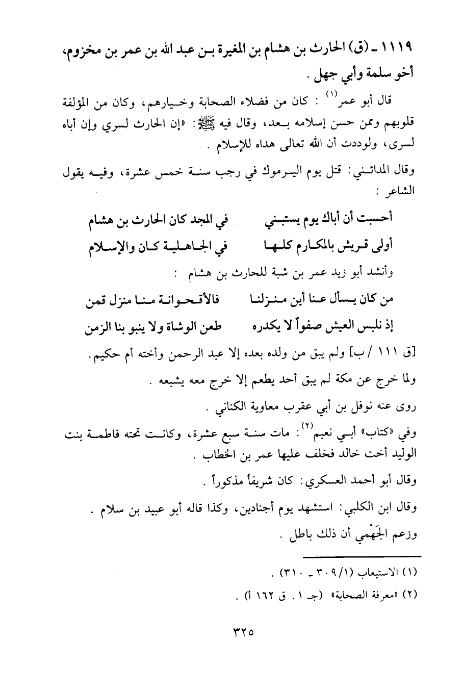 1119- (ق) الحارث بن هشام بن المغيرة بن عبد الله بن عمر بن مخزوم، أخو سلمة وأبي جهل.