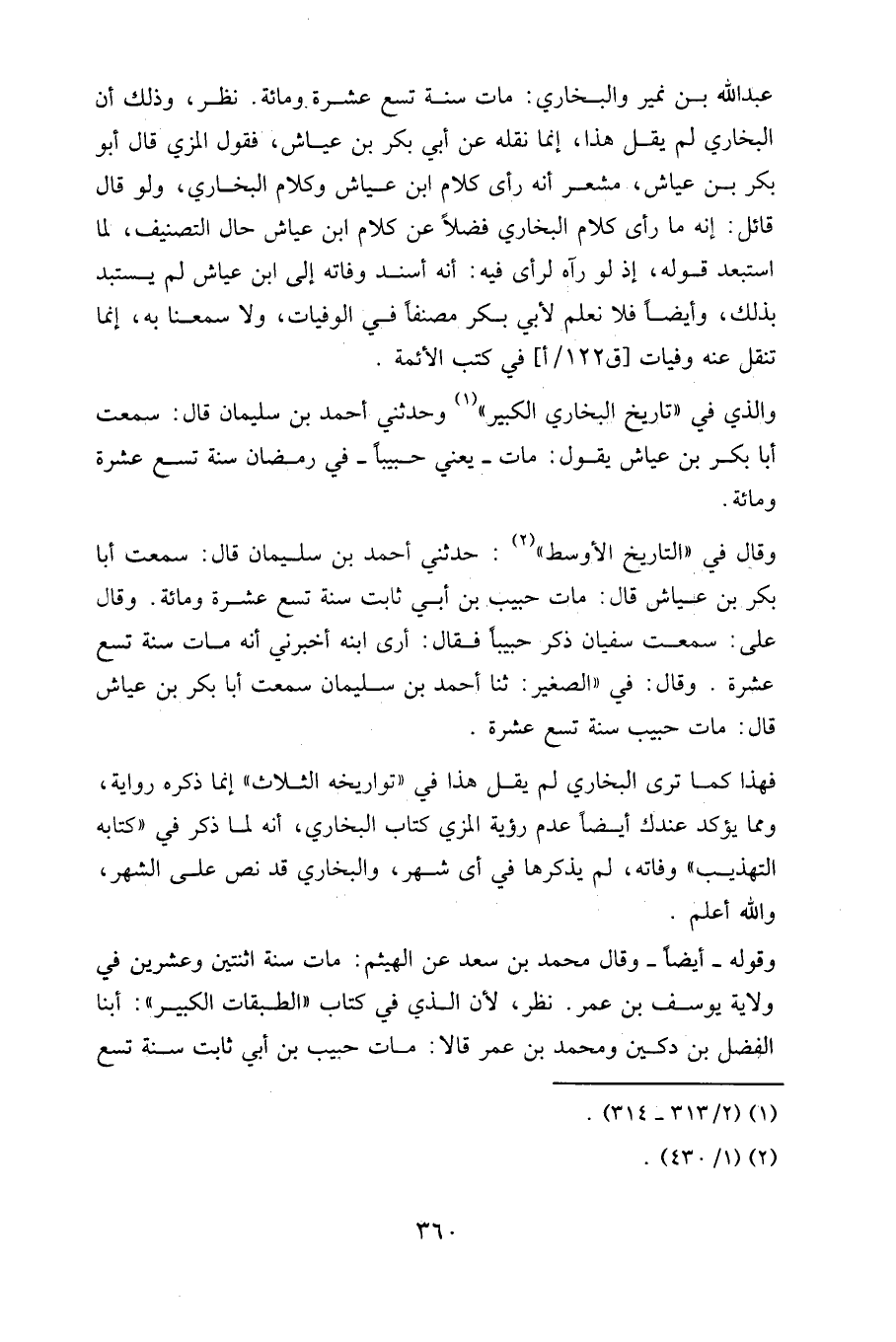 وأما الهيثم فإنه صحح عنه وفاته سنة اثنتين. كذا رأيته في تاريخيه "الكبير" و "الصغير"، وكذا هو أيضا في كتاب "الطبقات" تأليفه، والله أعلم.