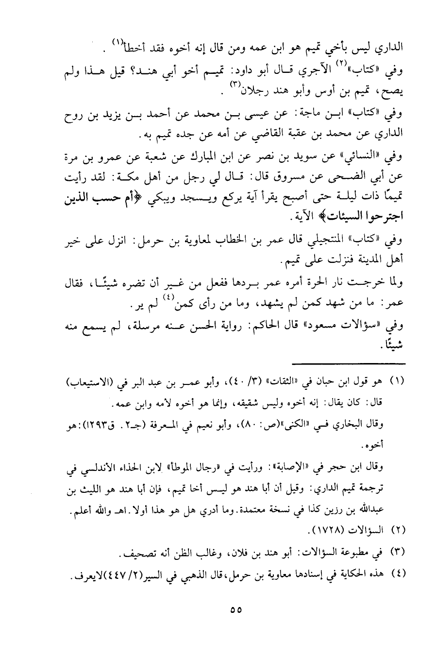 الداري ليس بأخي تميم، هو ابن عمه، ومن قال إنه أخوه فقد أخطأ.