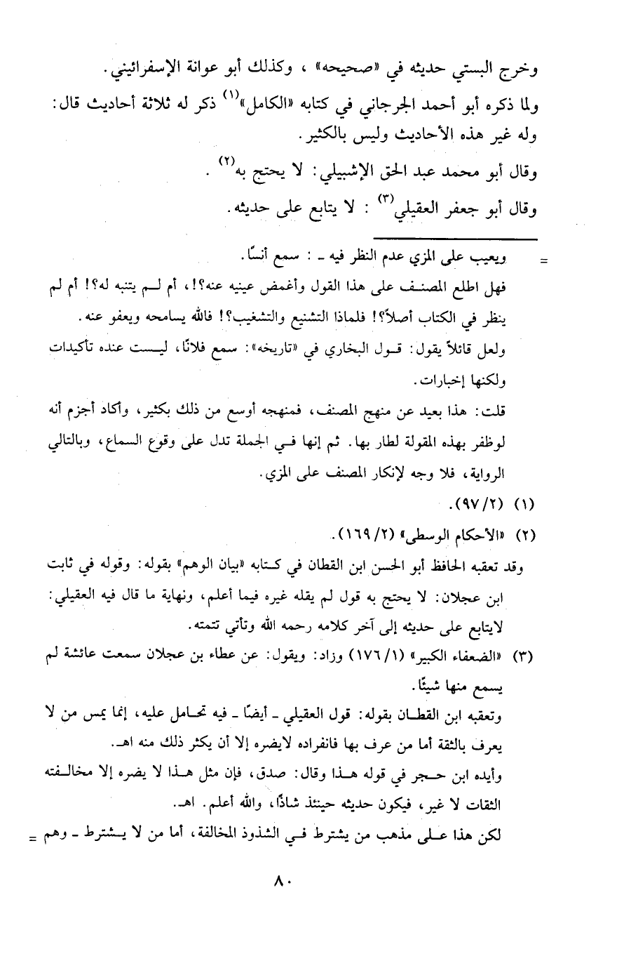 وقال أبو جعفر العقيلي: لا يتابع على حديثه.