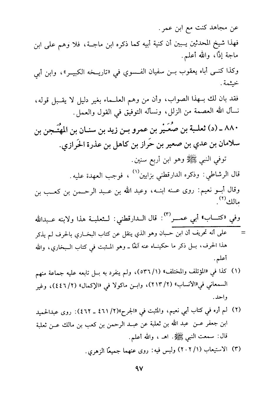 وفي "كتاب" أبي عمر: قال الدارقطني: لثعلبة هذا ولابنه عبد الله